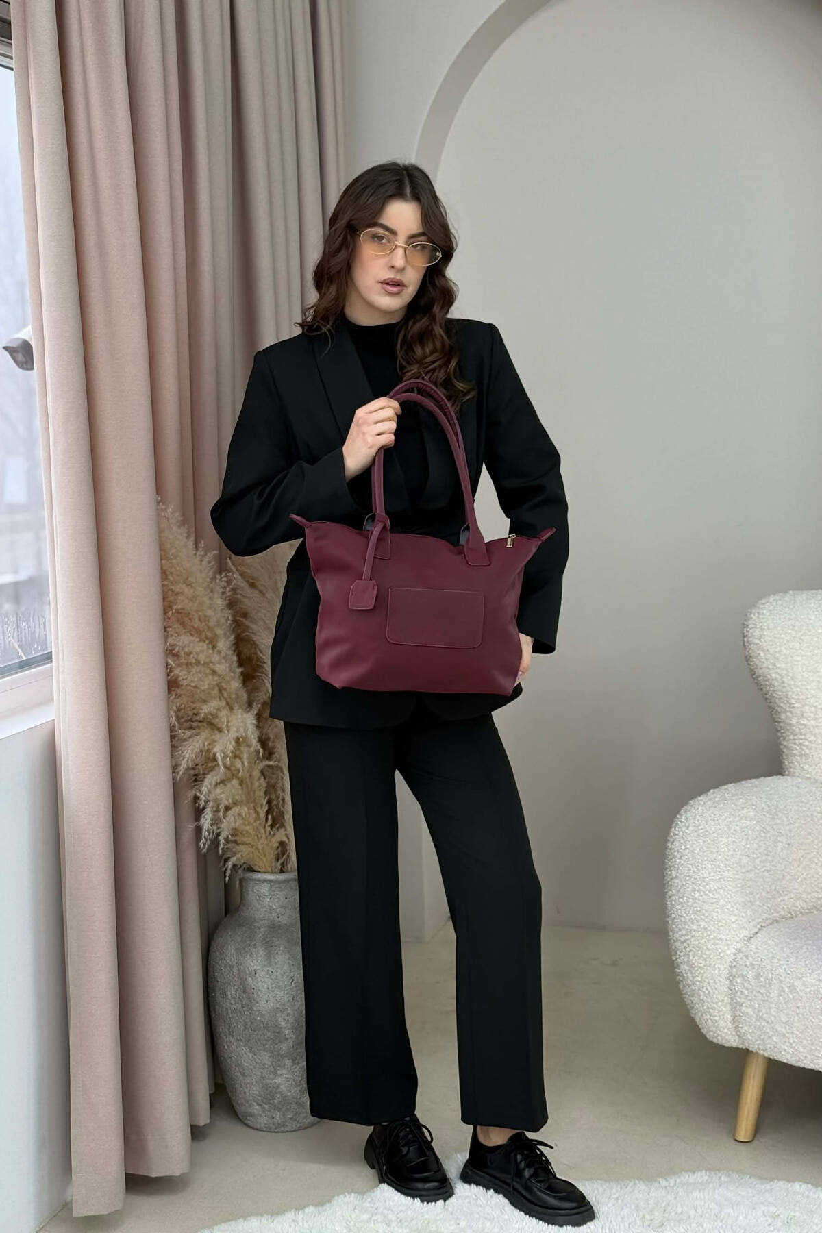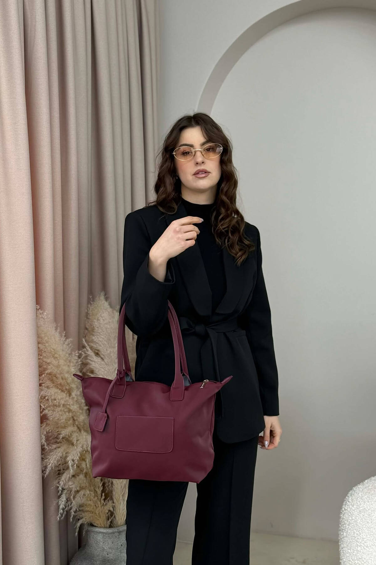 ÇANTE NJE NGJYRESHE ME DETAJIN E SHALLIT DHE ZINXHIR PER FEMRA NE NGJYRE VISHNJE