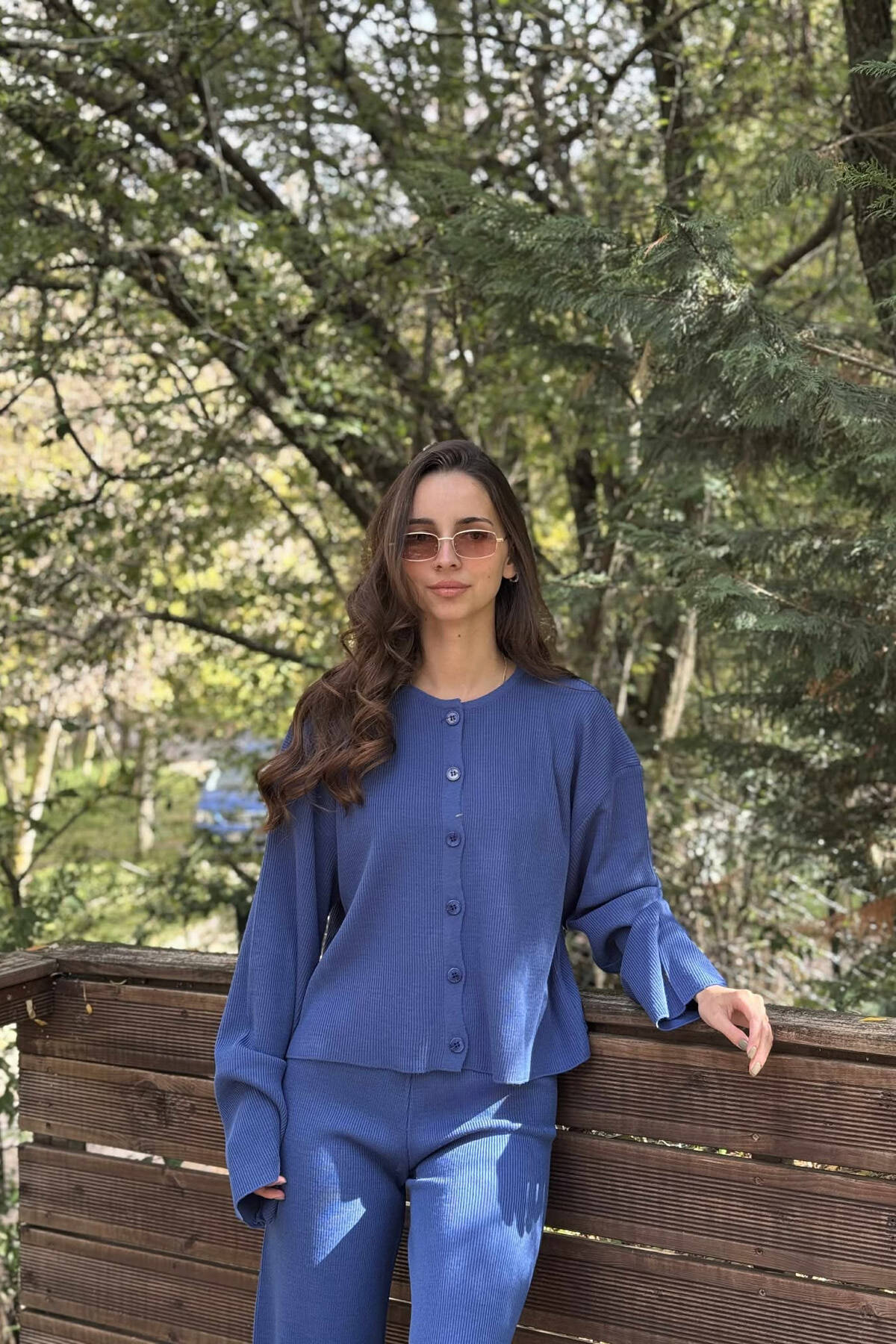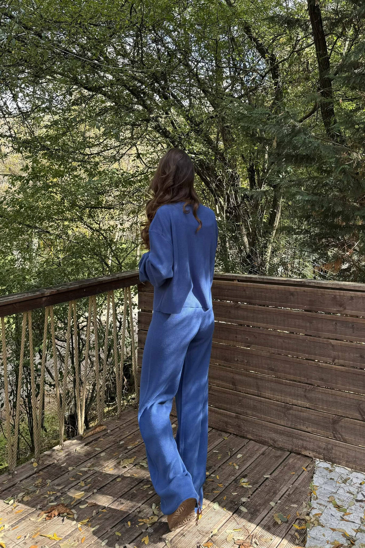 SET NJË NGJYRËSH I THJESHTË PULOVËR+PANTALLONA PËR FEMRA NË NGJYRË BLU