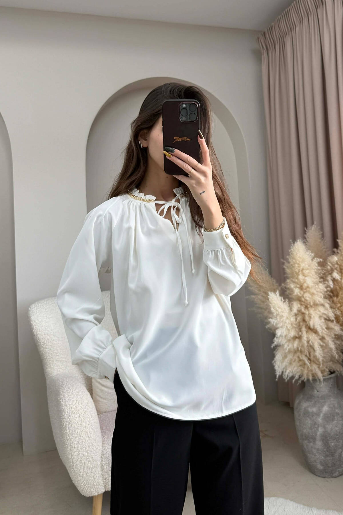 CHAIN DETAIL LACING ONE COLOR WOMEN SHIRT WHITE-E BARDHE