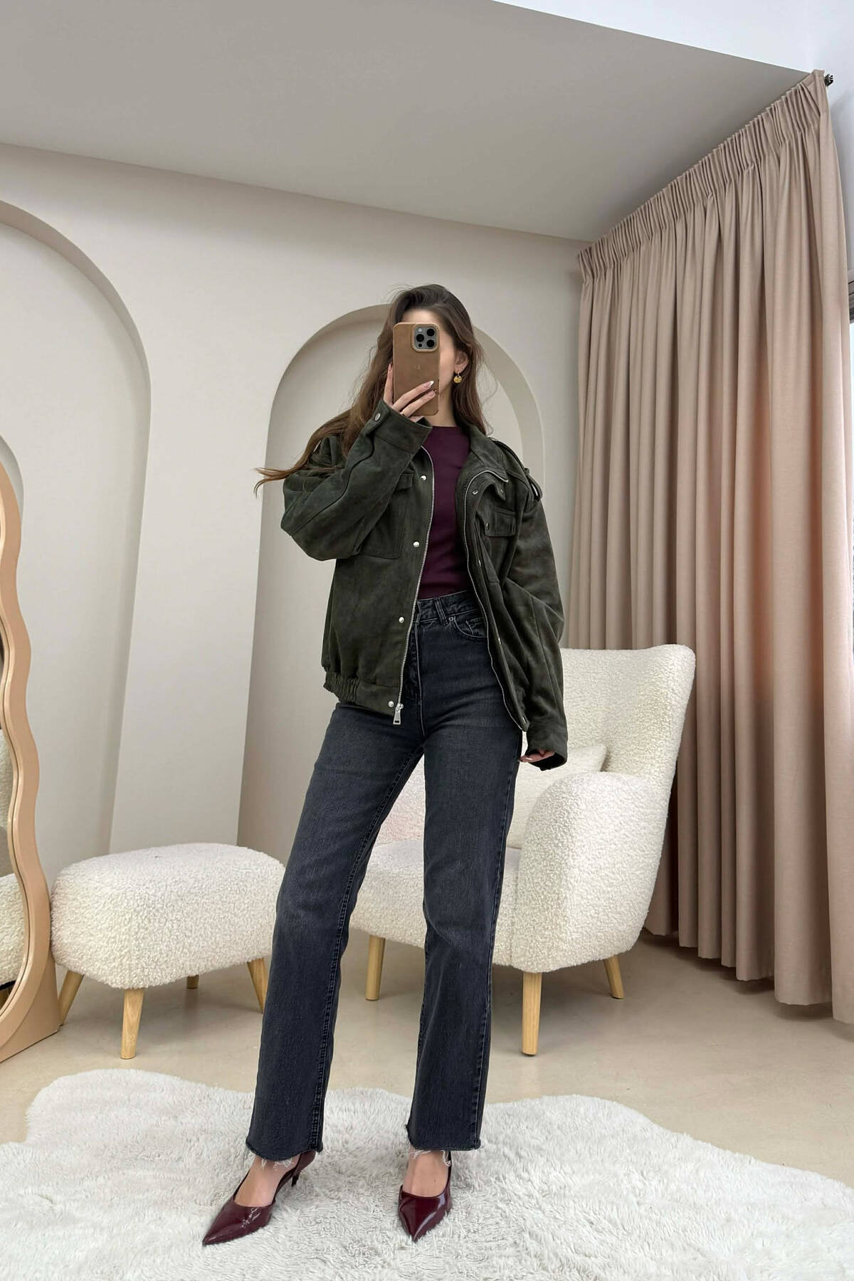 CHAMOIS BUTTONED AND ZIPPER WOMEN JACKET DARK GREEN/JEE