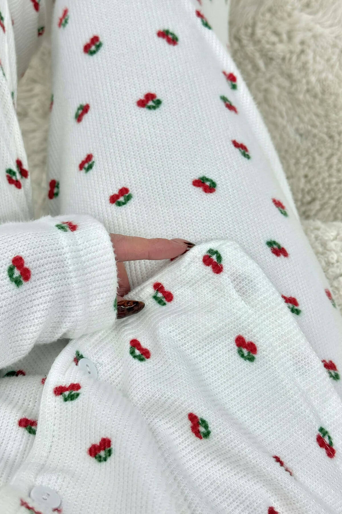 CHERRY DESIGN SHIRT+TROUSERS WOMEN PYJAMAS WHITE-E BARDHE