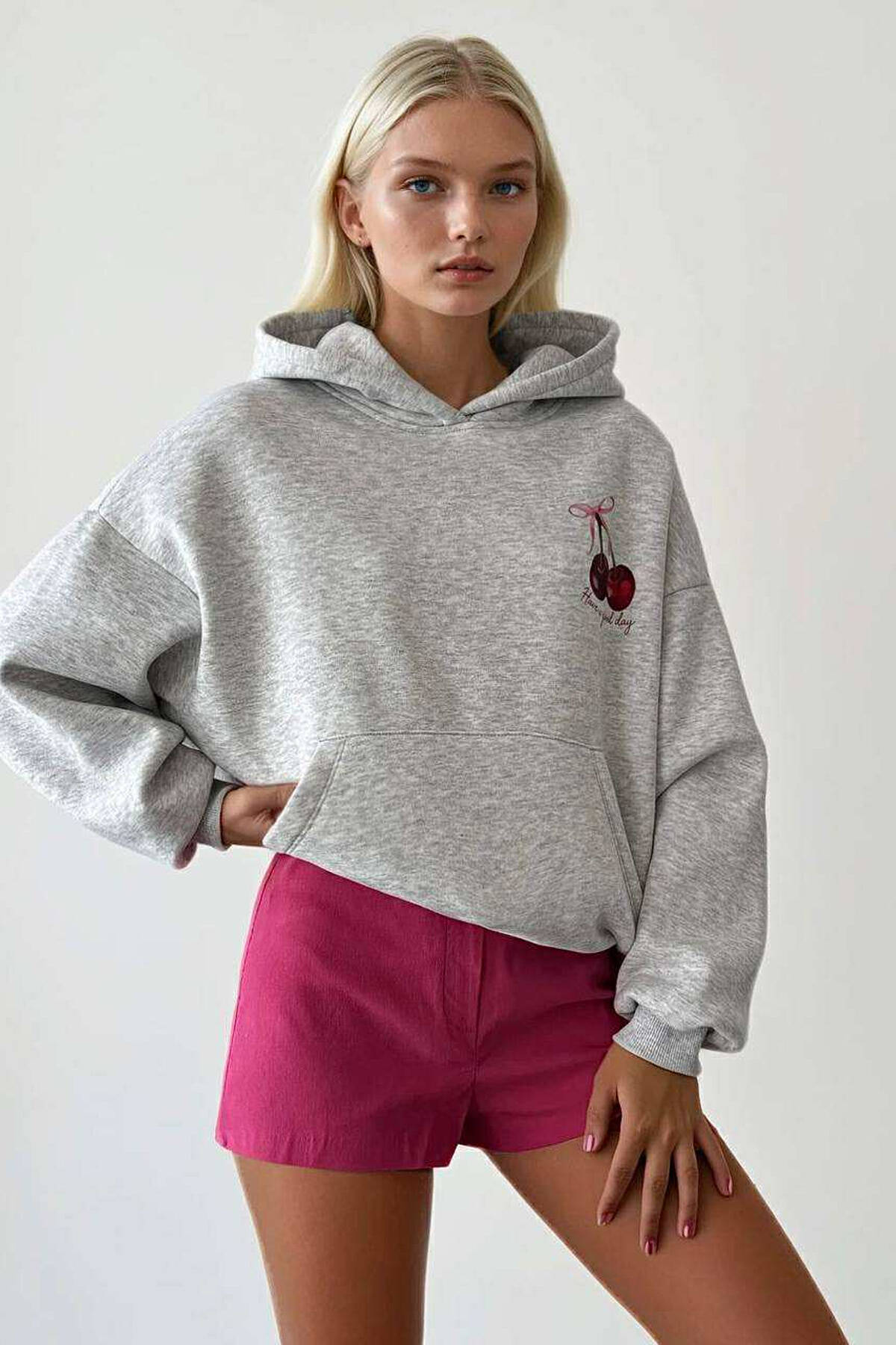 CHERRY LOGO FRONT& BACK DESIGN WOMEN HOODIE LIGHT GREY/GZ