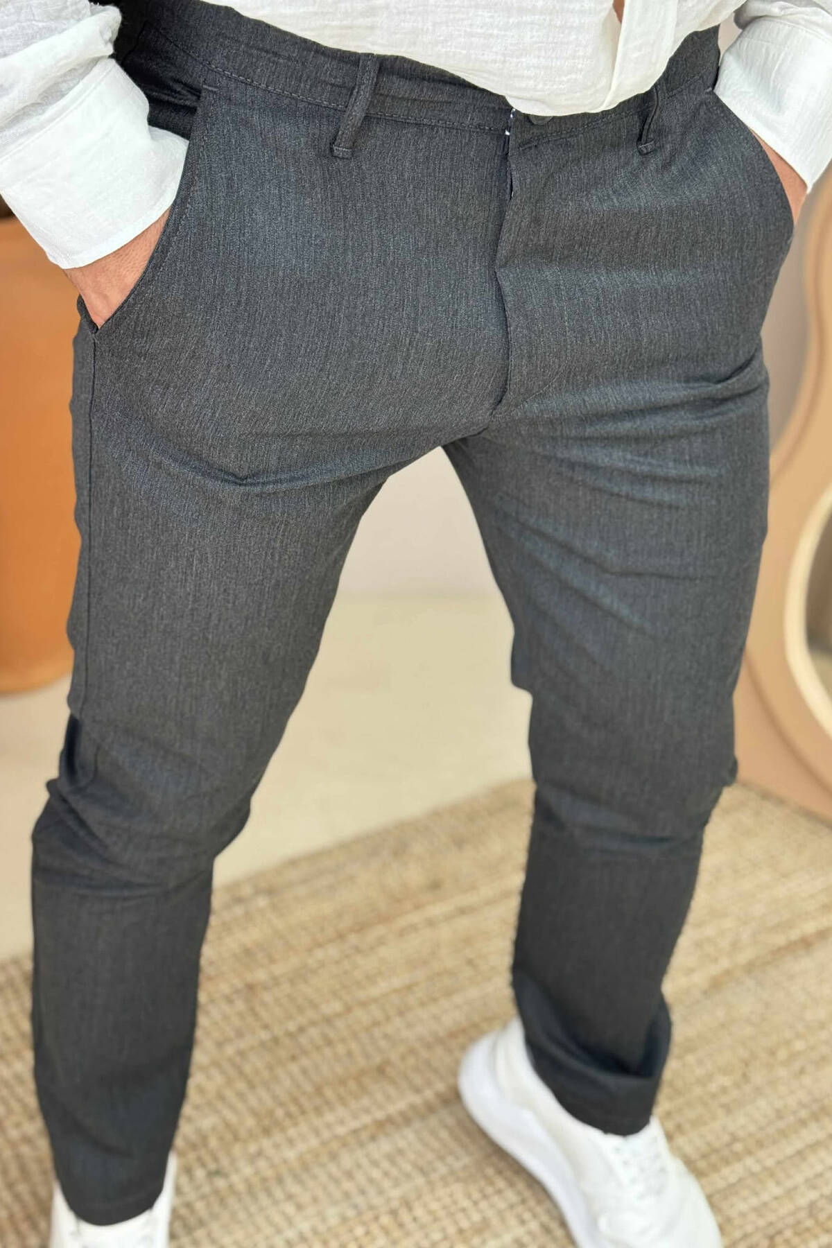 CLASSIC ONE COLOR SIMPLE MEN PANTS DARK GREY/GEE
