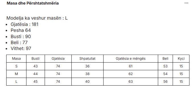 Size chart