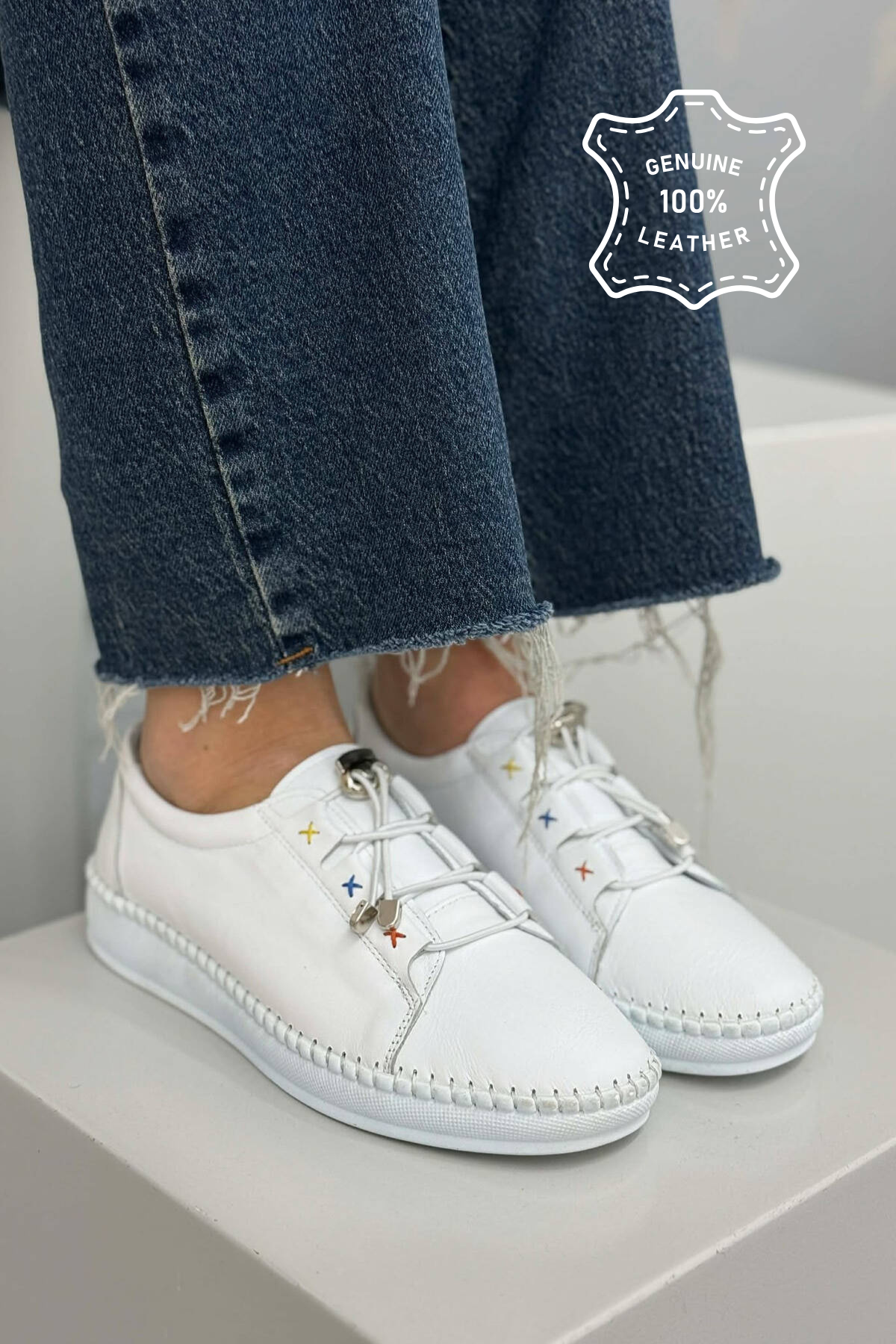 LEATHER COMFORT EVERYDAY WOMEN SNEAKERS WHITE-E BARDHE