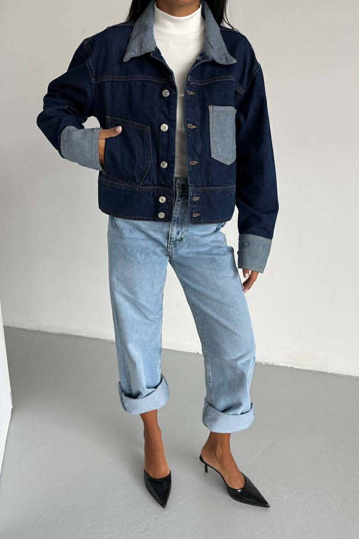 XHAKETE E SHKURTER ME DETAJ XHEPASH PER FEMRA NE NGJYRE BLU