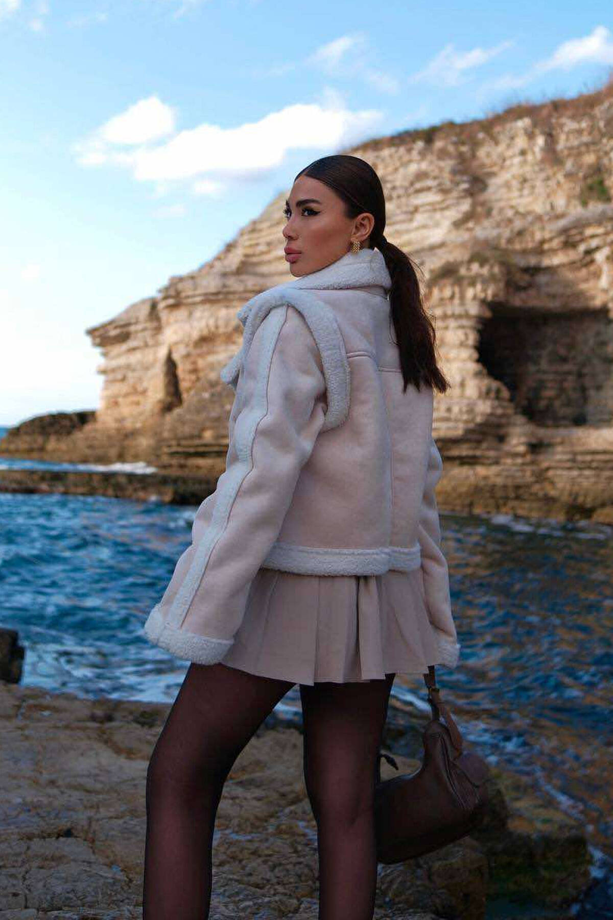 CROPPED FLUFFY WOMEN JACKET CREAM/KREM