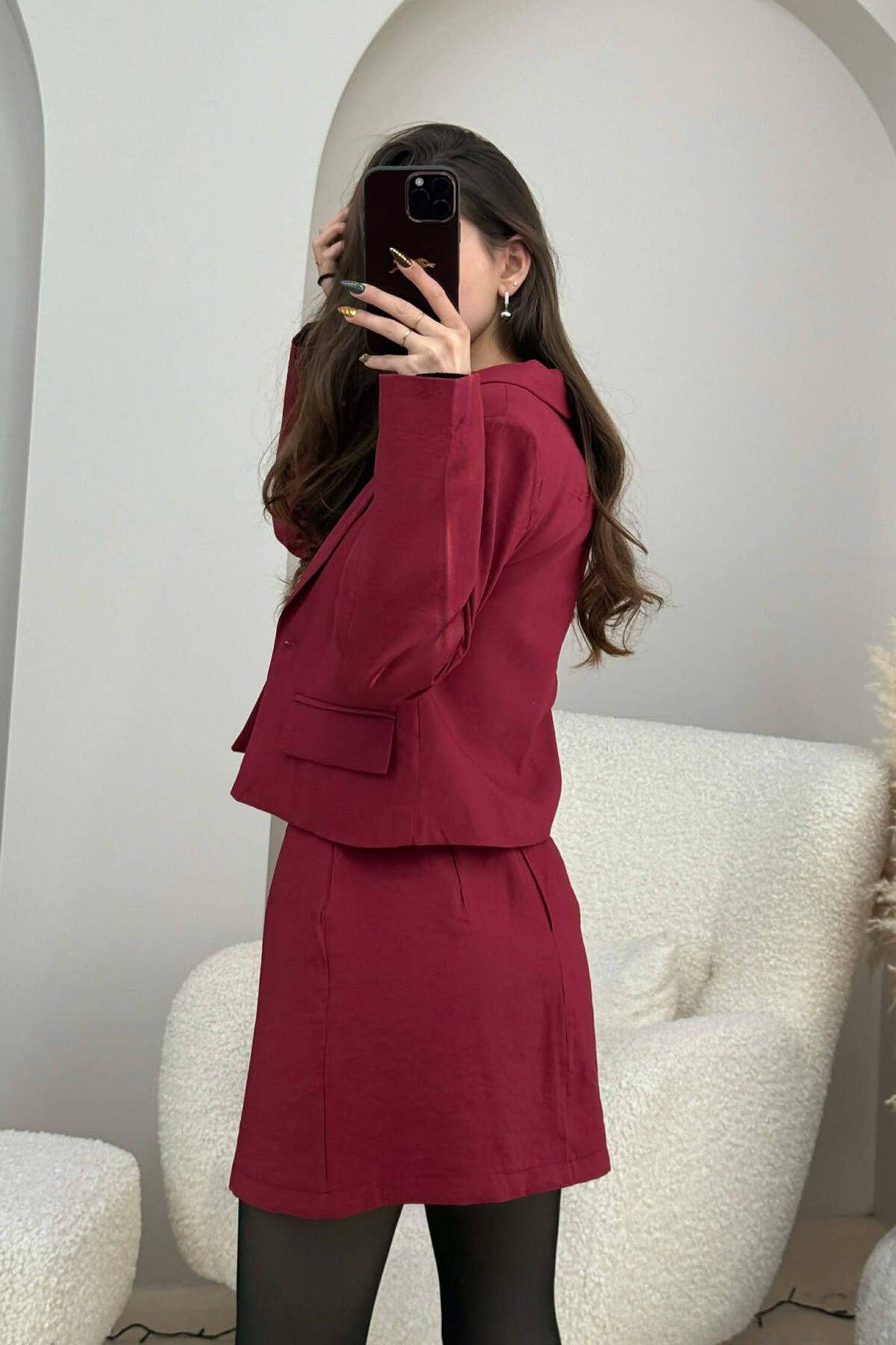 CROPPED JACKET+SKIRT ONE COLOR WOMEN SET BURGUNDY/VISHNJE