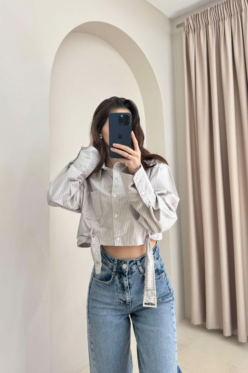 CROPPED STRIPE DESIGN WOMEN SHIRT BEIGE/BEZHE