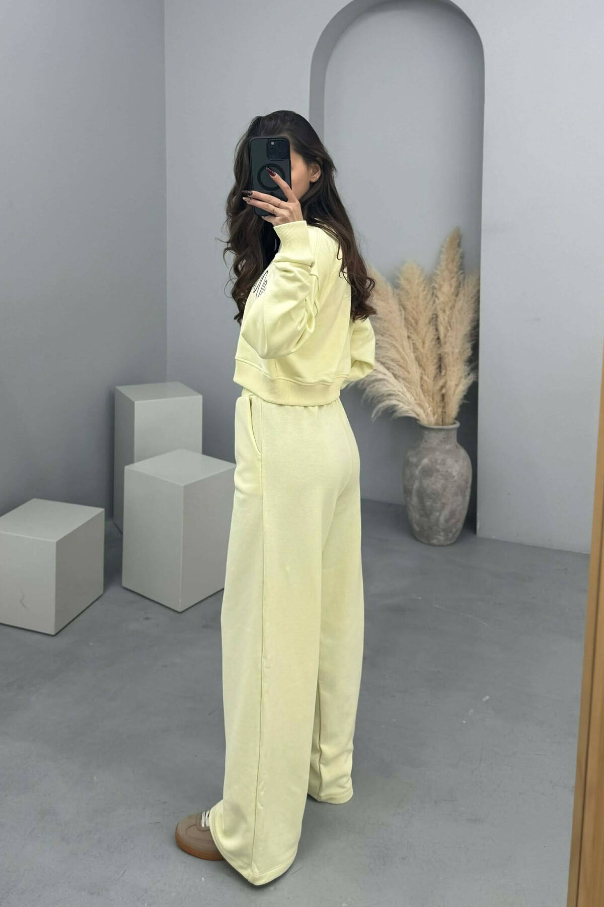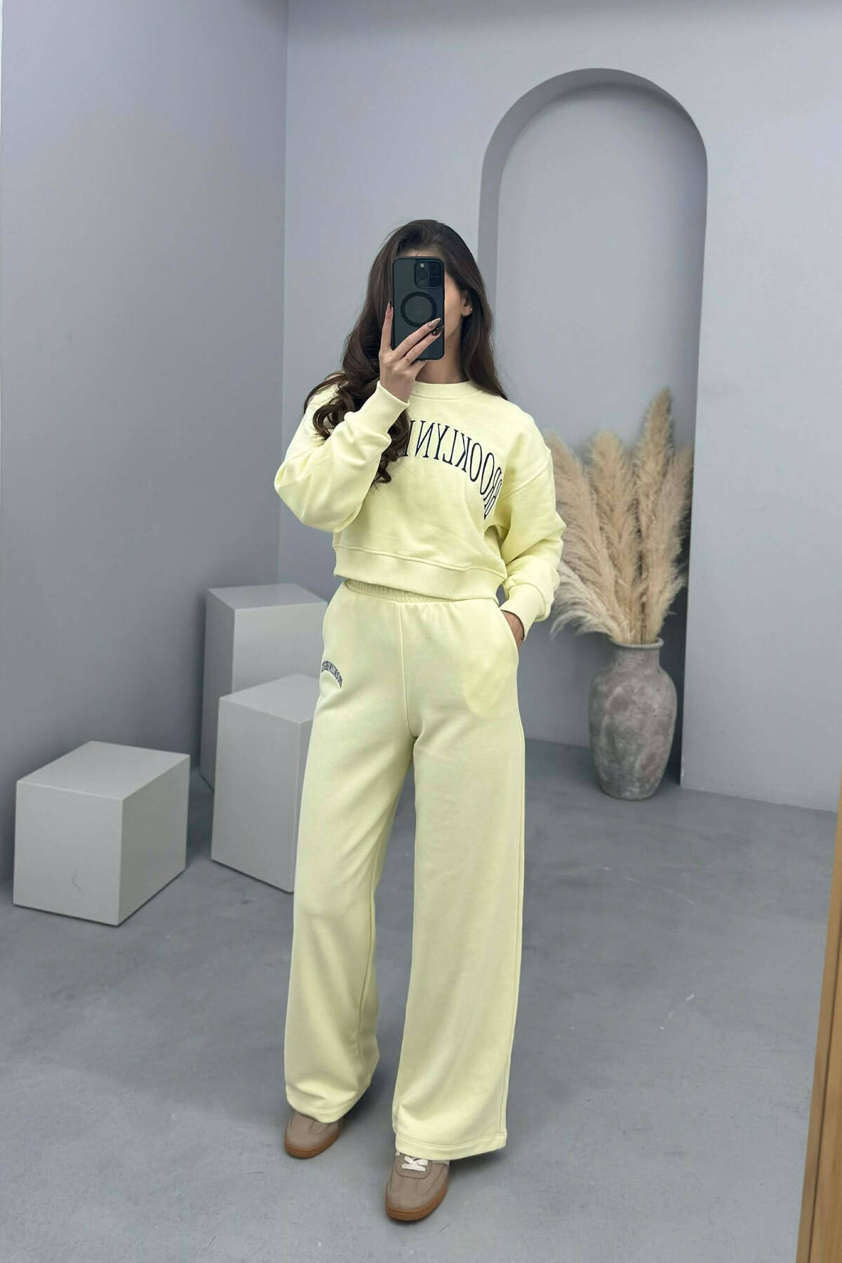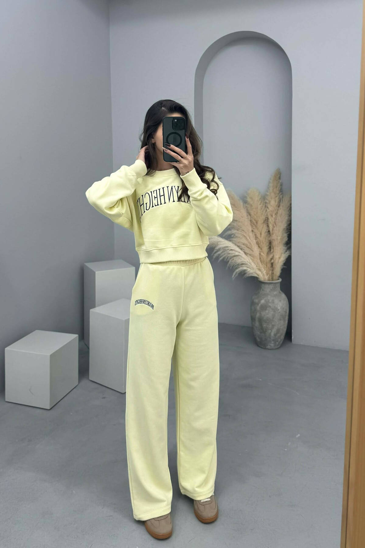 CROPPED SWEATSHIRT+SWEATPANTS WRITTINGS WOMEN SET YELLOW/E VERDHE