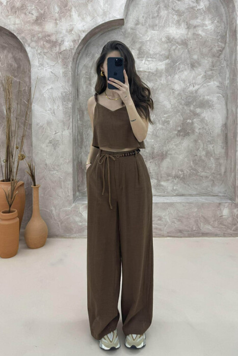 CROP+TROUSERS LINEN WOMAN SET BROWN/KAFE