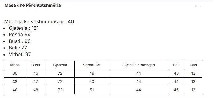 Size chart