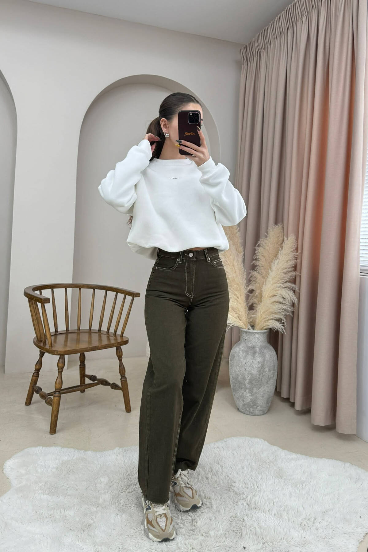 WIDE LEG ONE COLOR WOMEN JEANS BROWN/KAFE