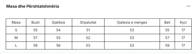 Size chart