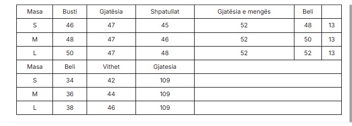 Size chart