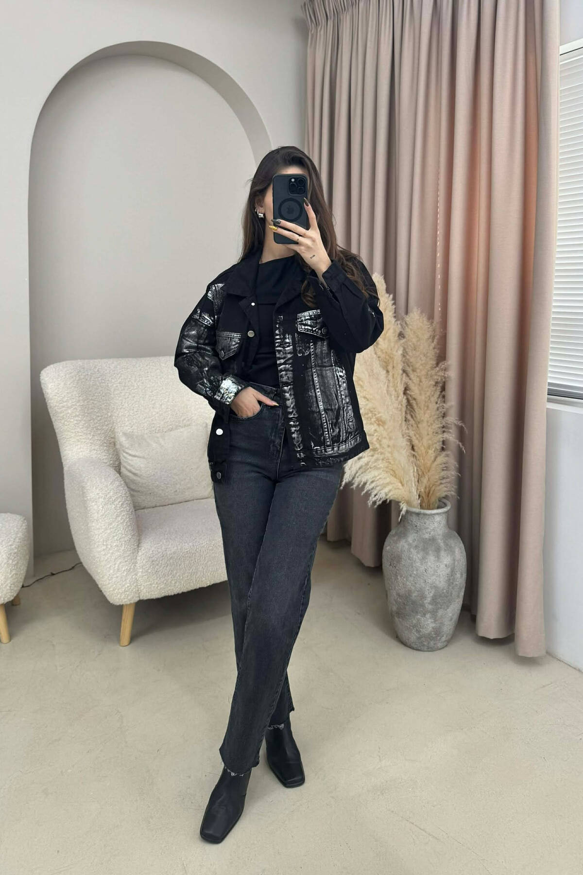 DENIM SHINY DETAILS WOMEN JACKET BLACK/ E ZEZE