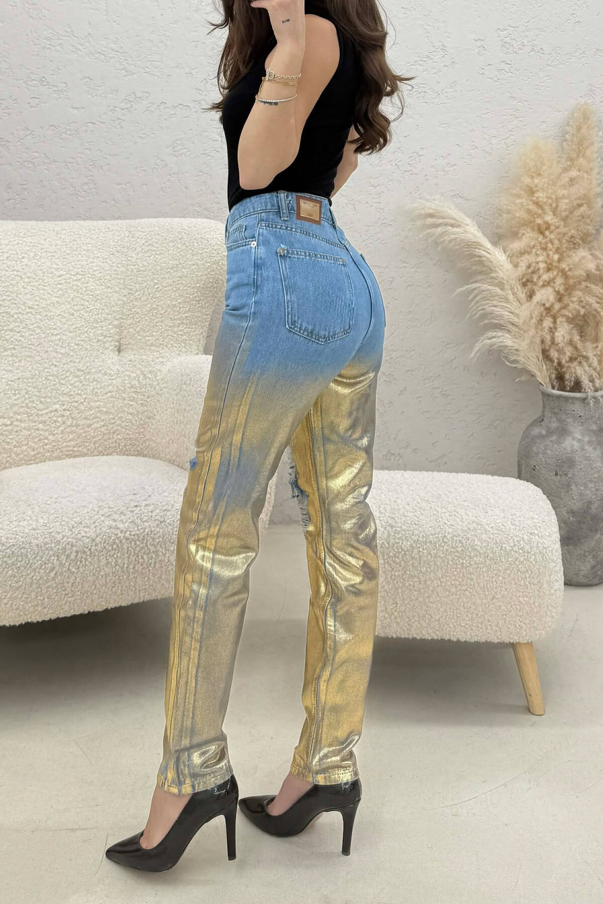 DENIM SHINY DETAILS WOMEN JEANS GOLDEN ROD/GOLD