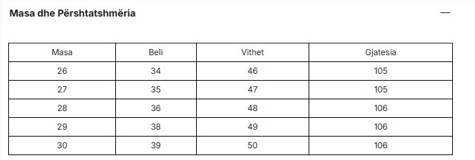 Size chart