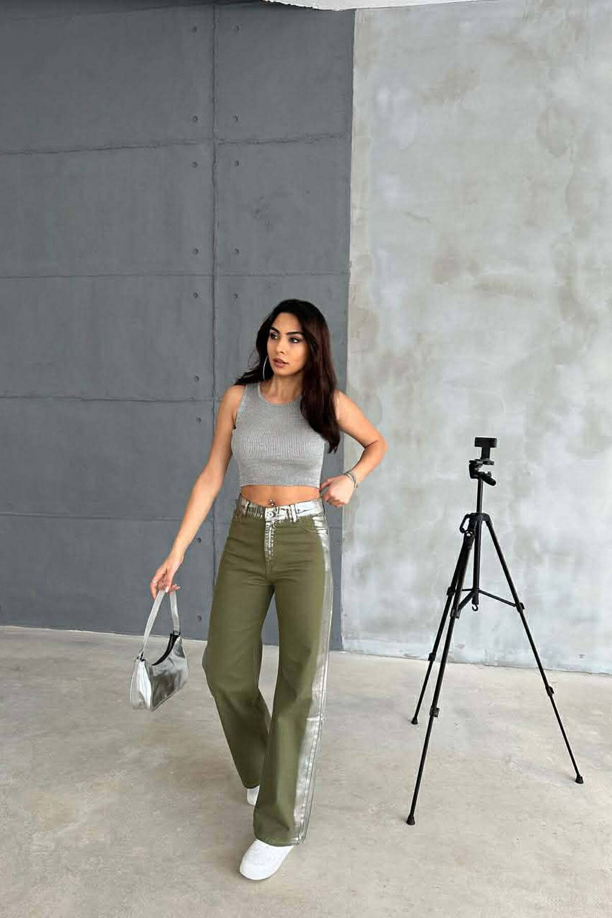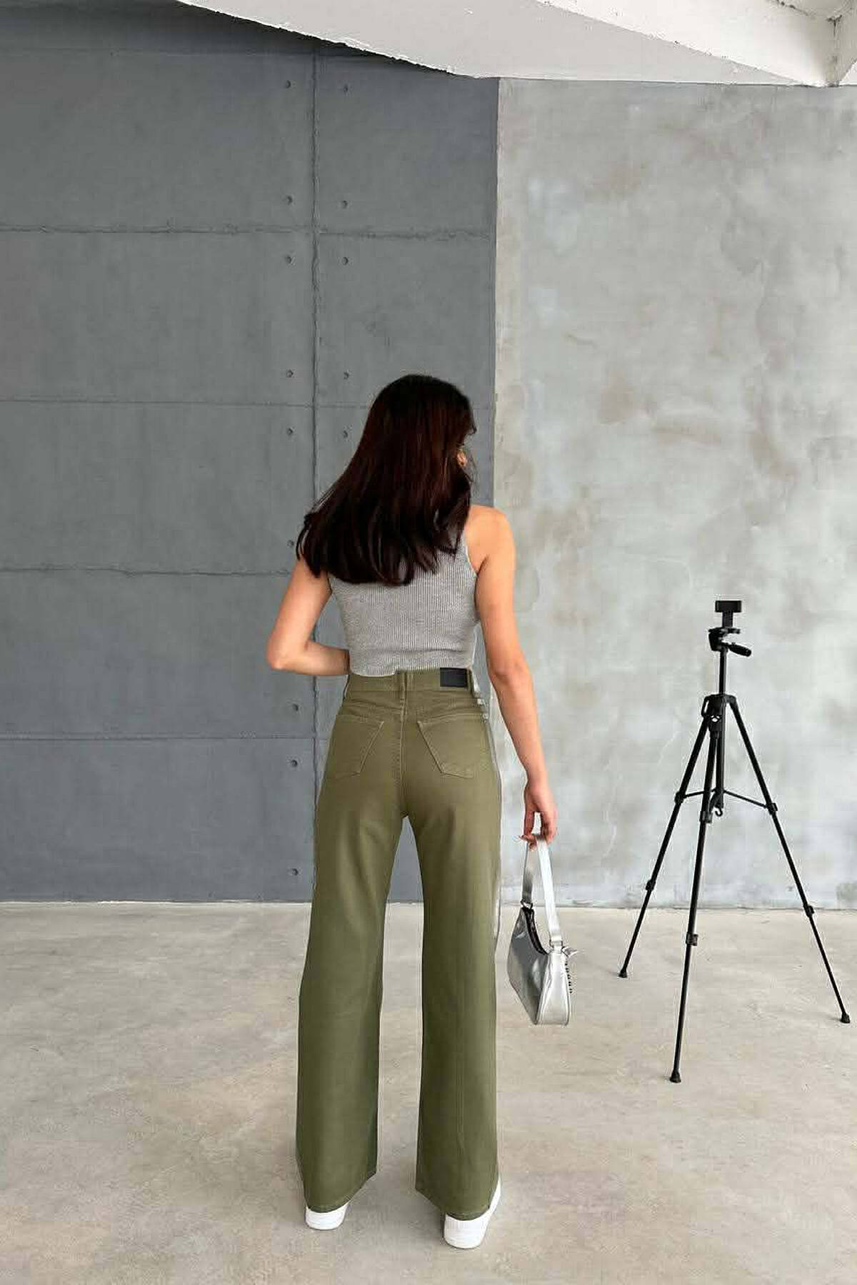 DENIM SILVER DETAILS WIDE LEG WOMEN JEANS GREEN/JESHILE