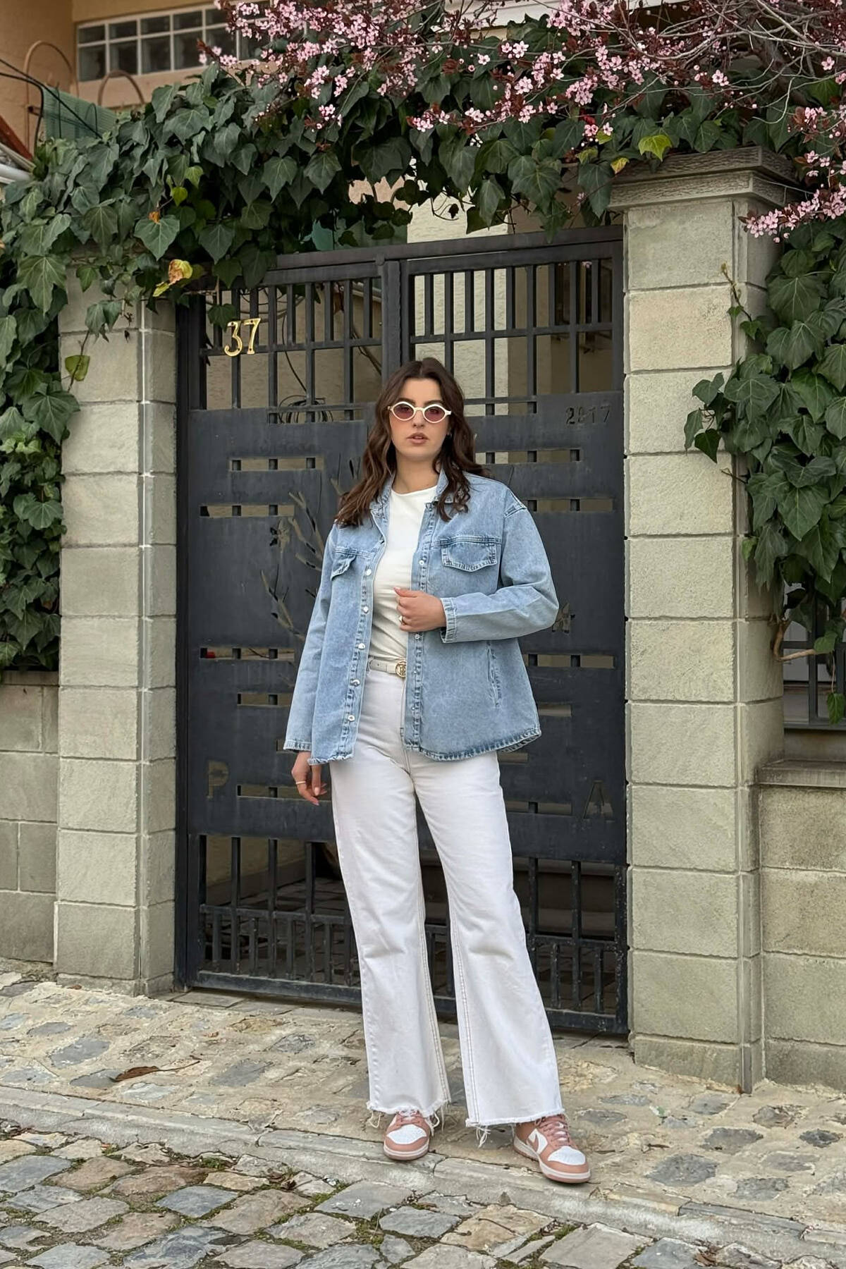 DENIM SIMPLE BUTTONED WOMEN JACKET LIGHTBLUE/BZ