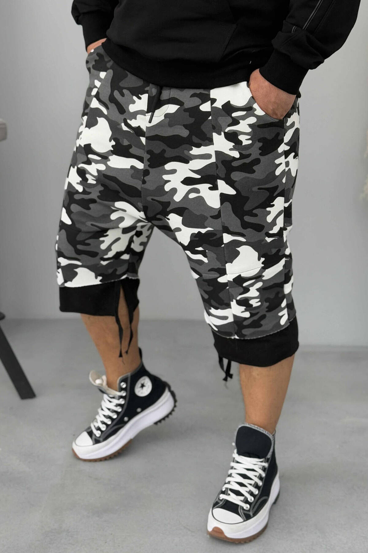 ZIPPER POCKETS SIMPLE MEN SHORT SWEATPANTS GREY ASH/GRI HIRI