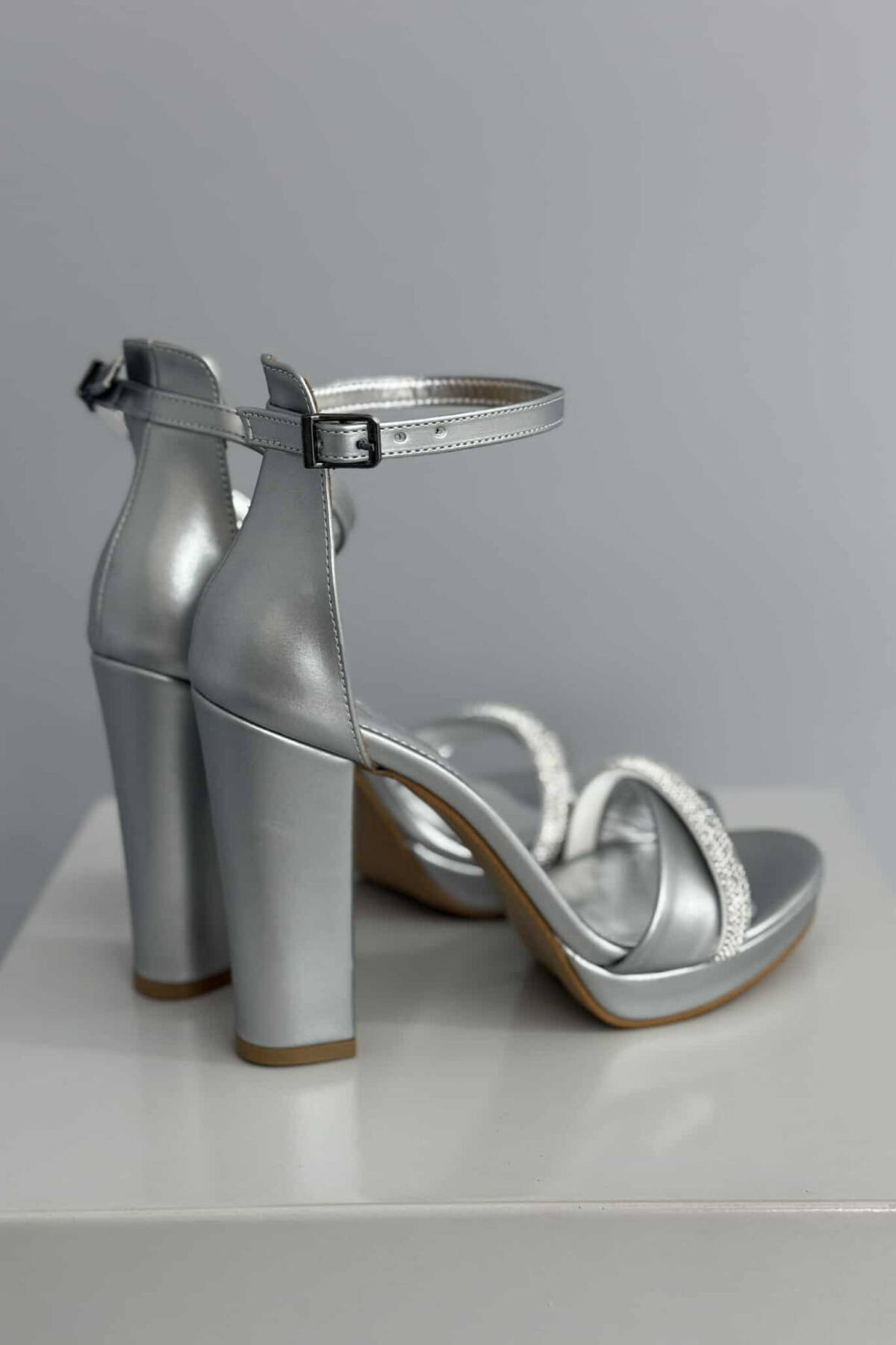 HIGH HEEL ONE COLOR SHINNY WOMEN SANDALS GREY/GRI