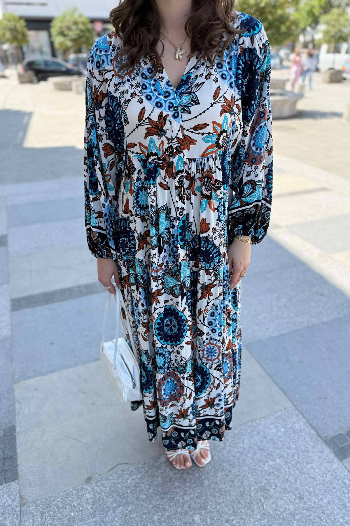 DIFFERENT DESIGN HALF SLEEVE LONG WOMEN DRESS BLUE/BLU