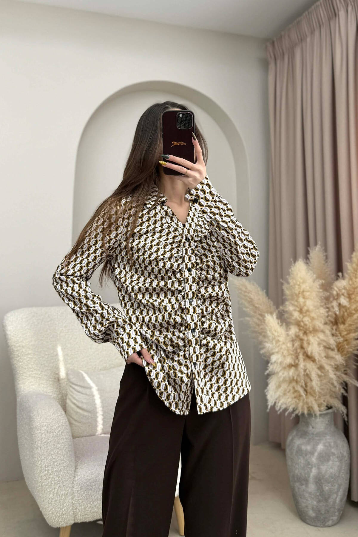 LINES DESIGN WOMAN SHIRT BROWN/KAFE