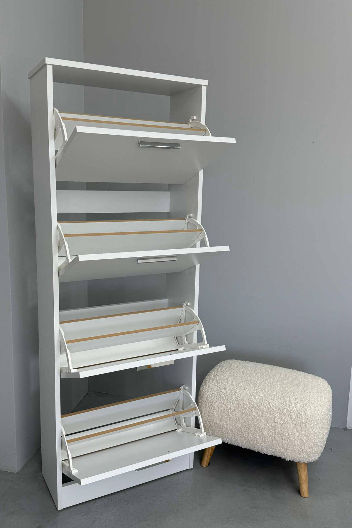 Organizim & stil në çdo hapësirë! Raft këpucësh me 4 kate ,dizajn minimalist në të bardhë – praktik, modern dhe funksional.