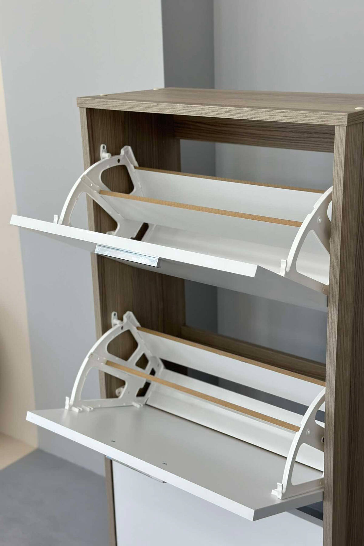 Organizim & stil në çdo hapësirë! Raft këpucësh me 3 kate ,dizajn minimalist në të bardhë – praktik, modern dhe funksional.