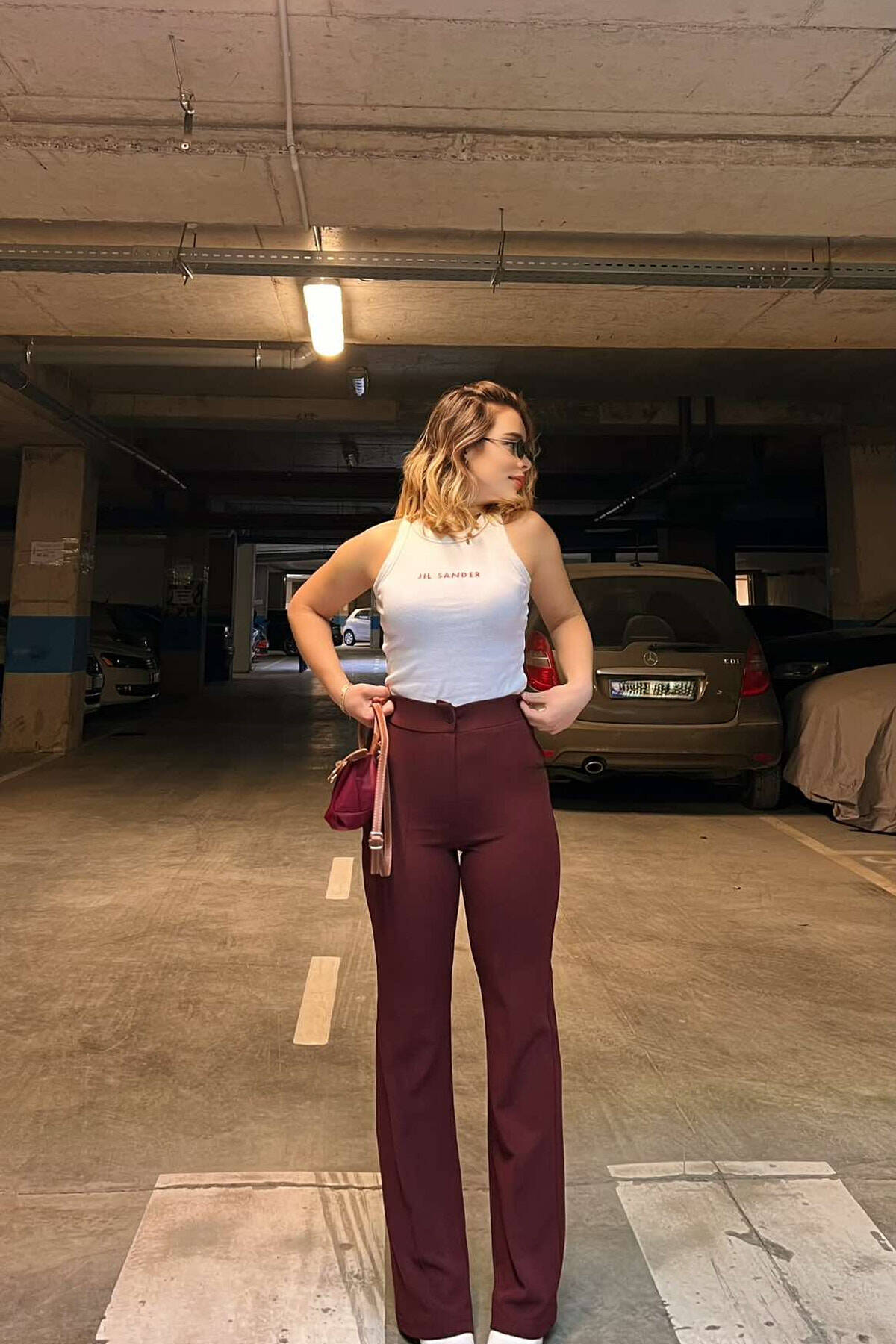 ELASTIC ONE COLOR WOMEN TROUSERS BURGUNDY/VISHNJE