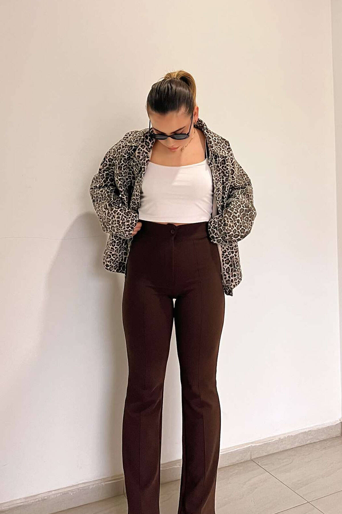 ONE COLOR WIDE LEG BELT DETAIL WOMAN TROUSERS DARK BROWN/KAE