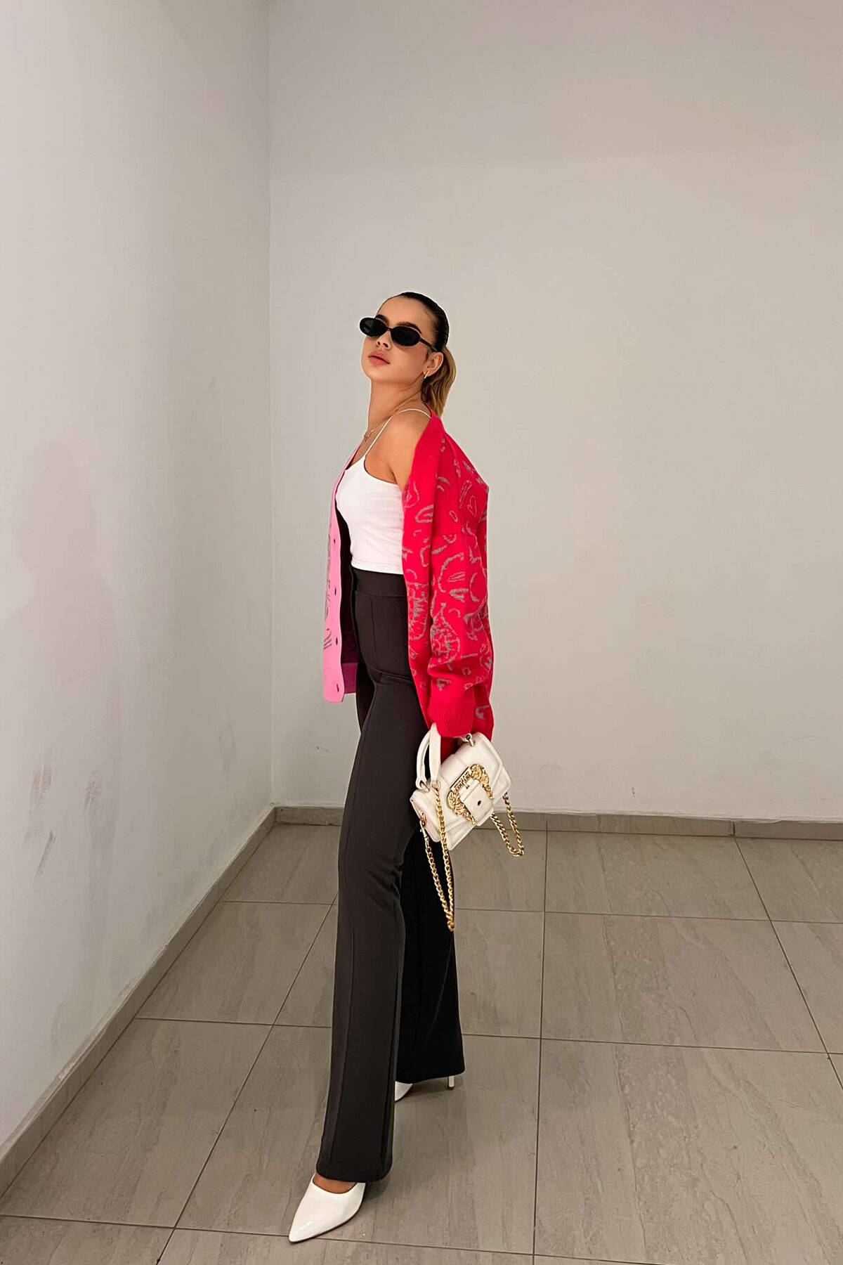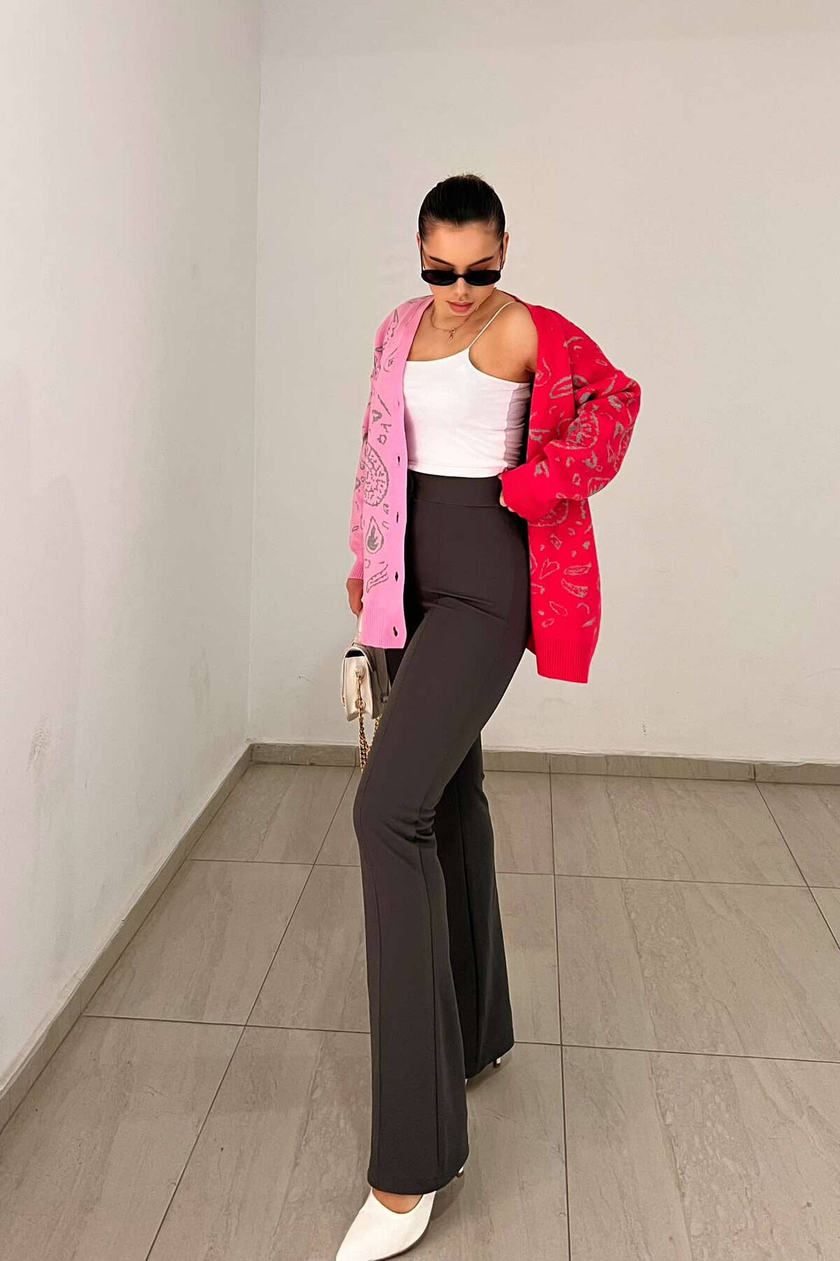 PLAID DESIGN WIDE LEG WOMAN TROUSERS DARK GREY/GEE