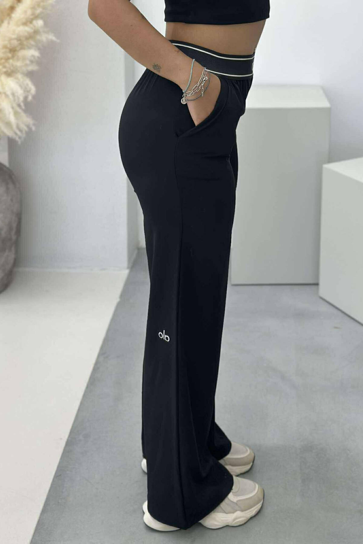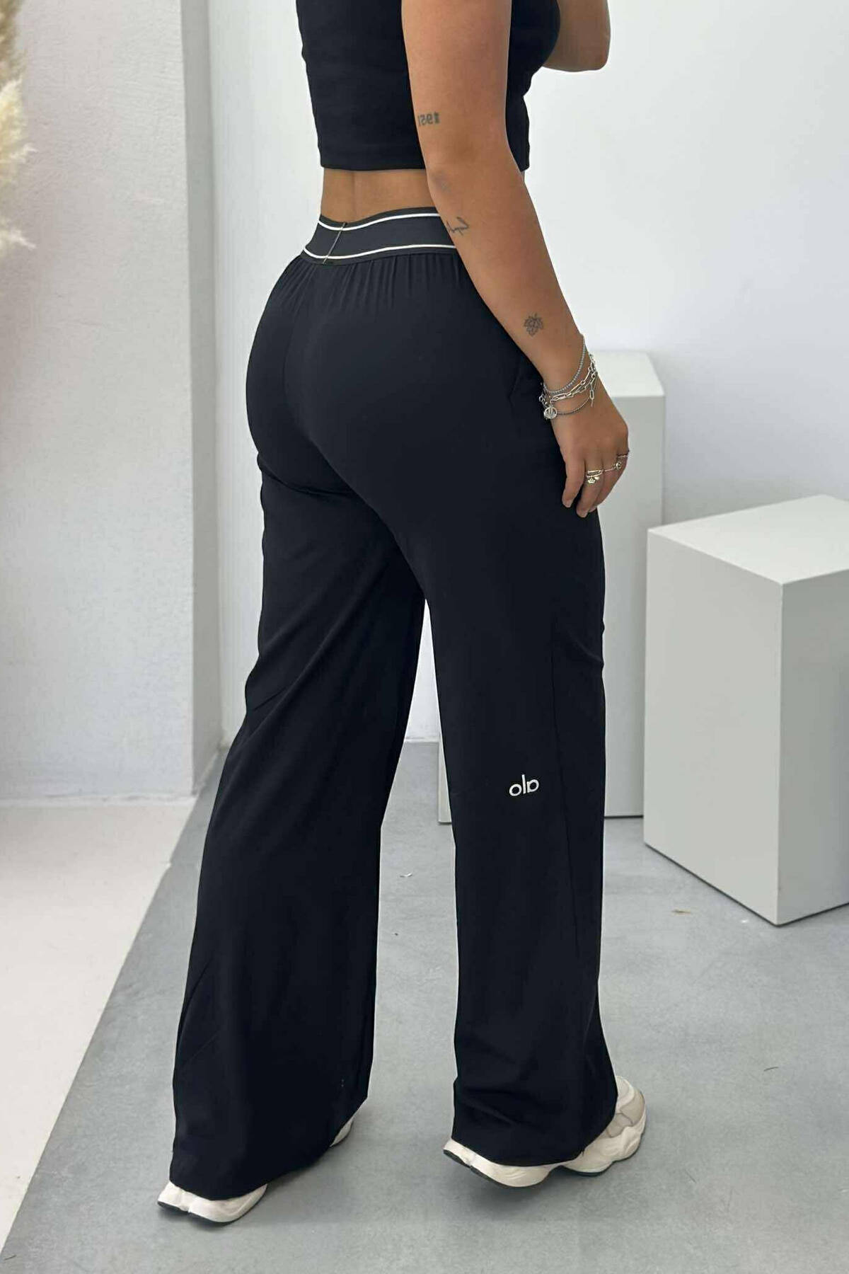 ELASTIC WAIST ALO WRITTING WOMEN TROUSERS BLACK/ E ZEZE
