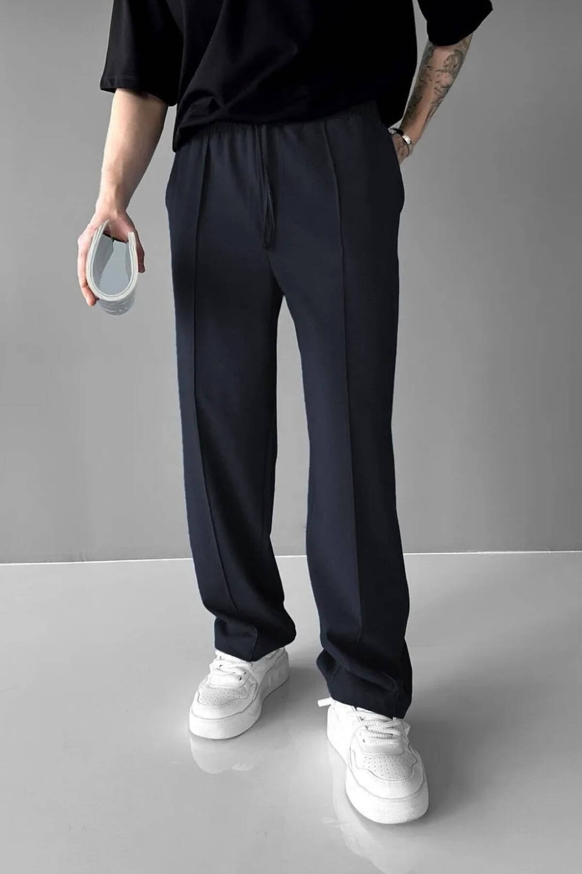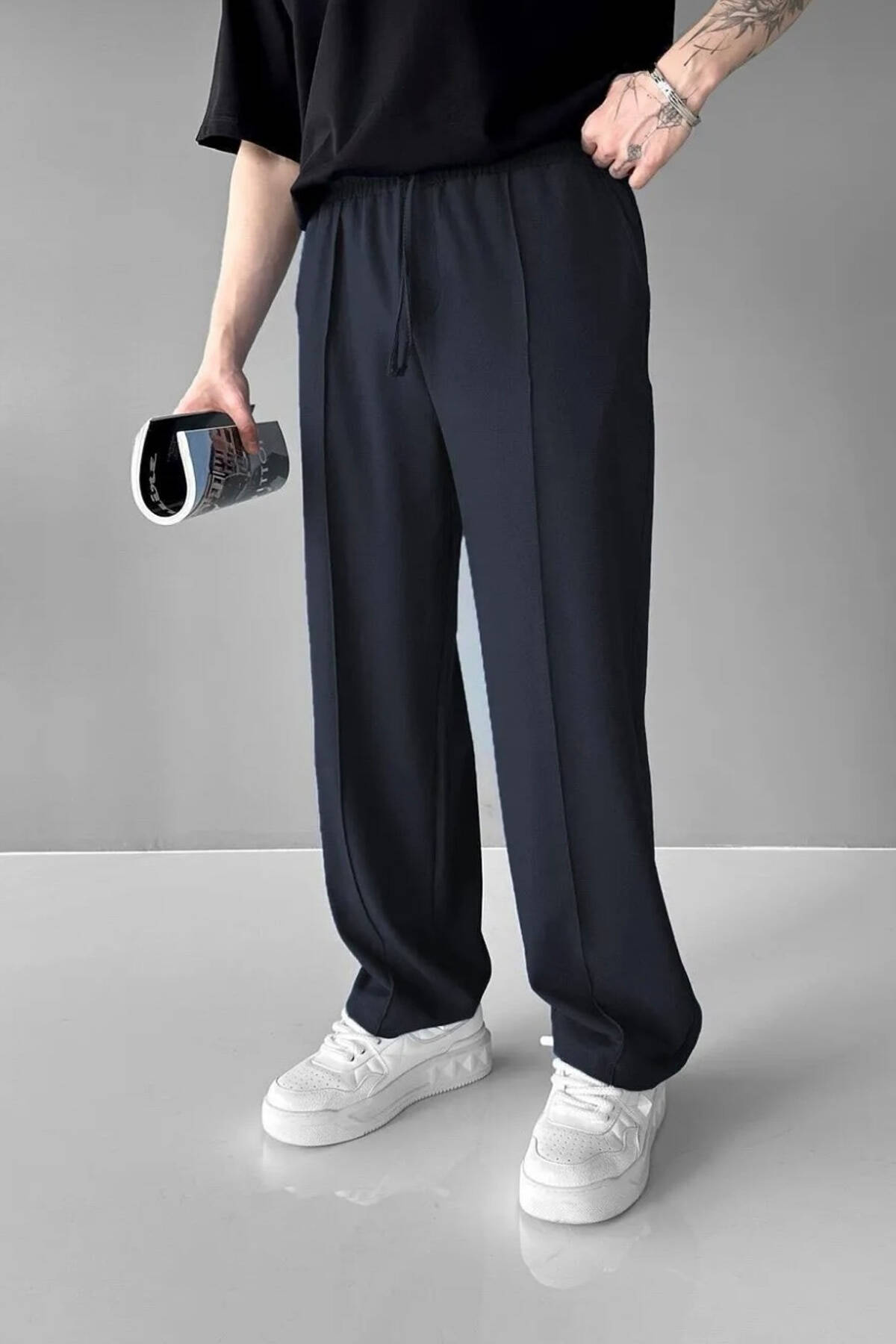 PANTALLONA TË GJERA ME BEL ELASTIK PËR MESHKUJ NË NGJYRËN BLU E ERRËT