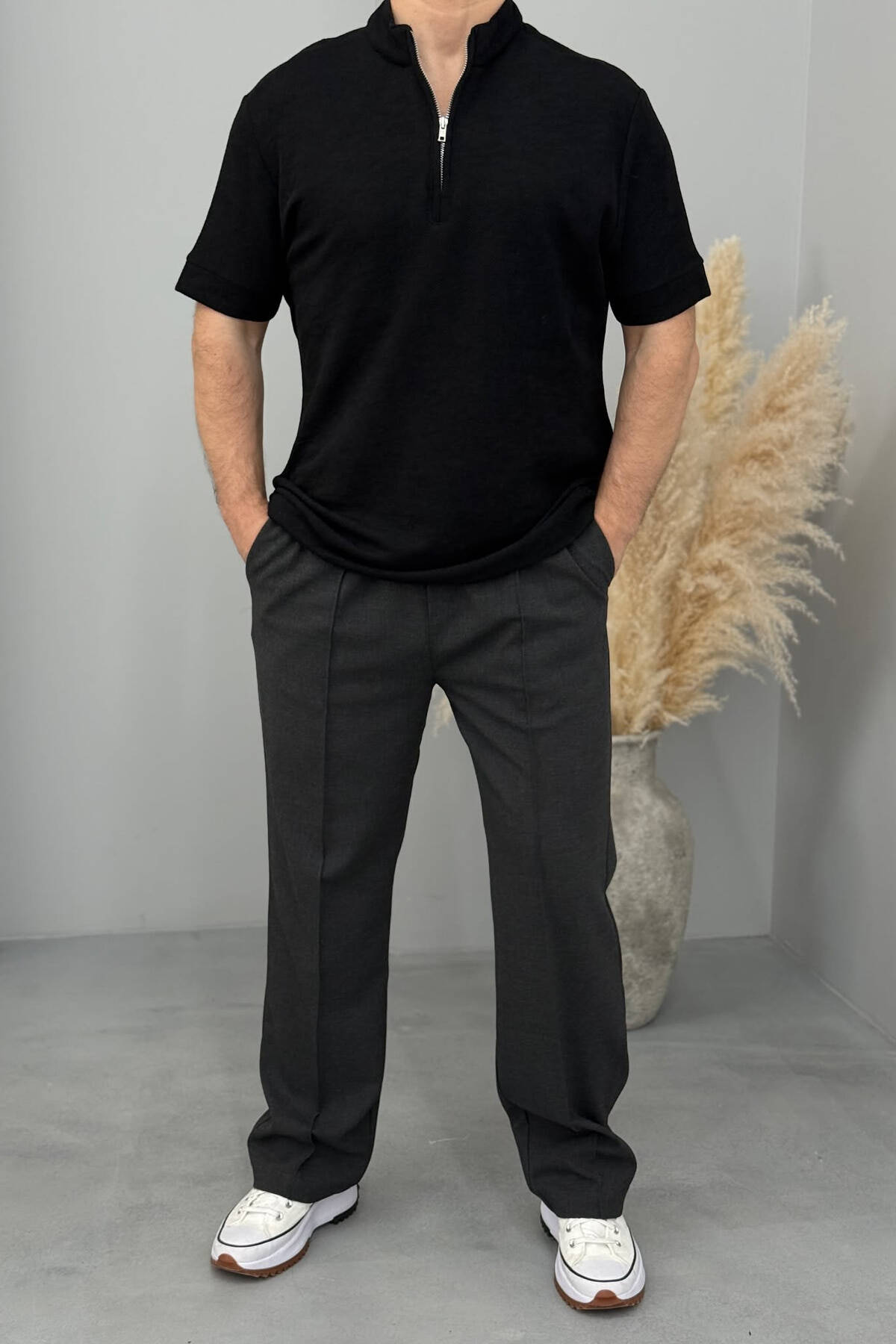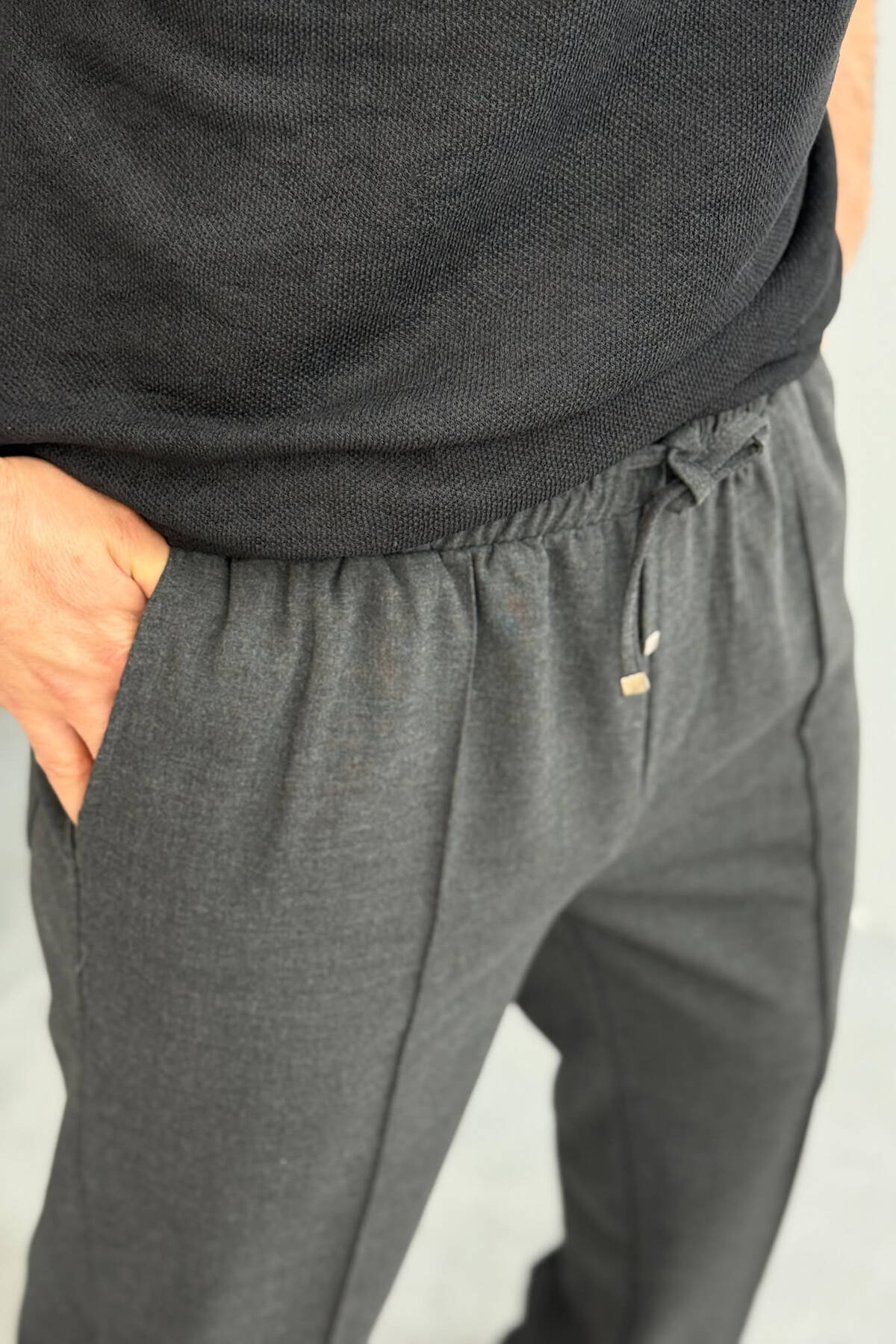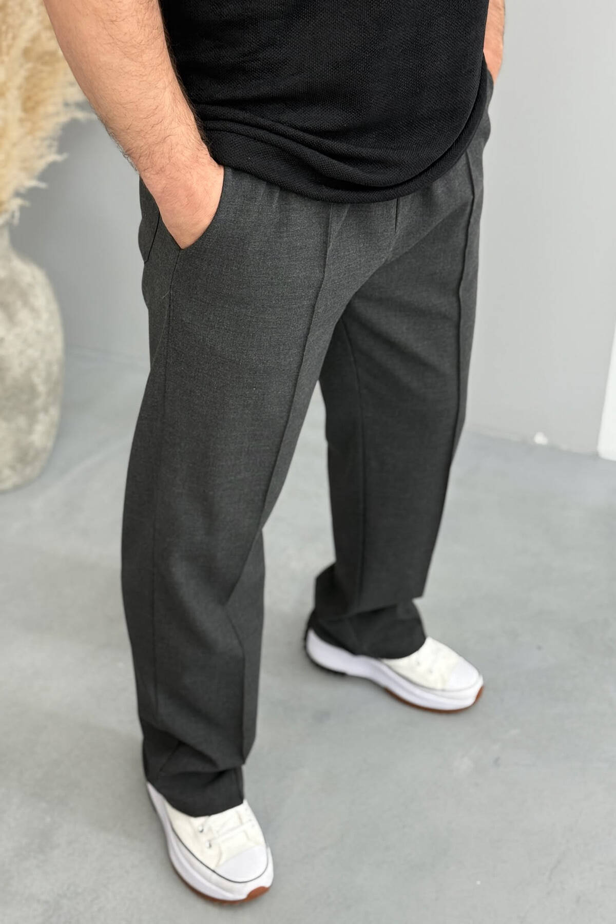 PANTALLONA TË GJERA ME BEL ELASTIK PËR MESHKUJ NË NGJYRËN GRI E ERRËT