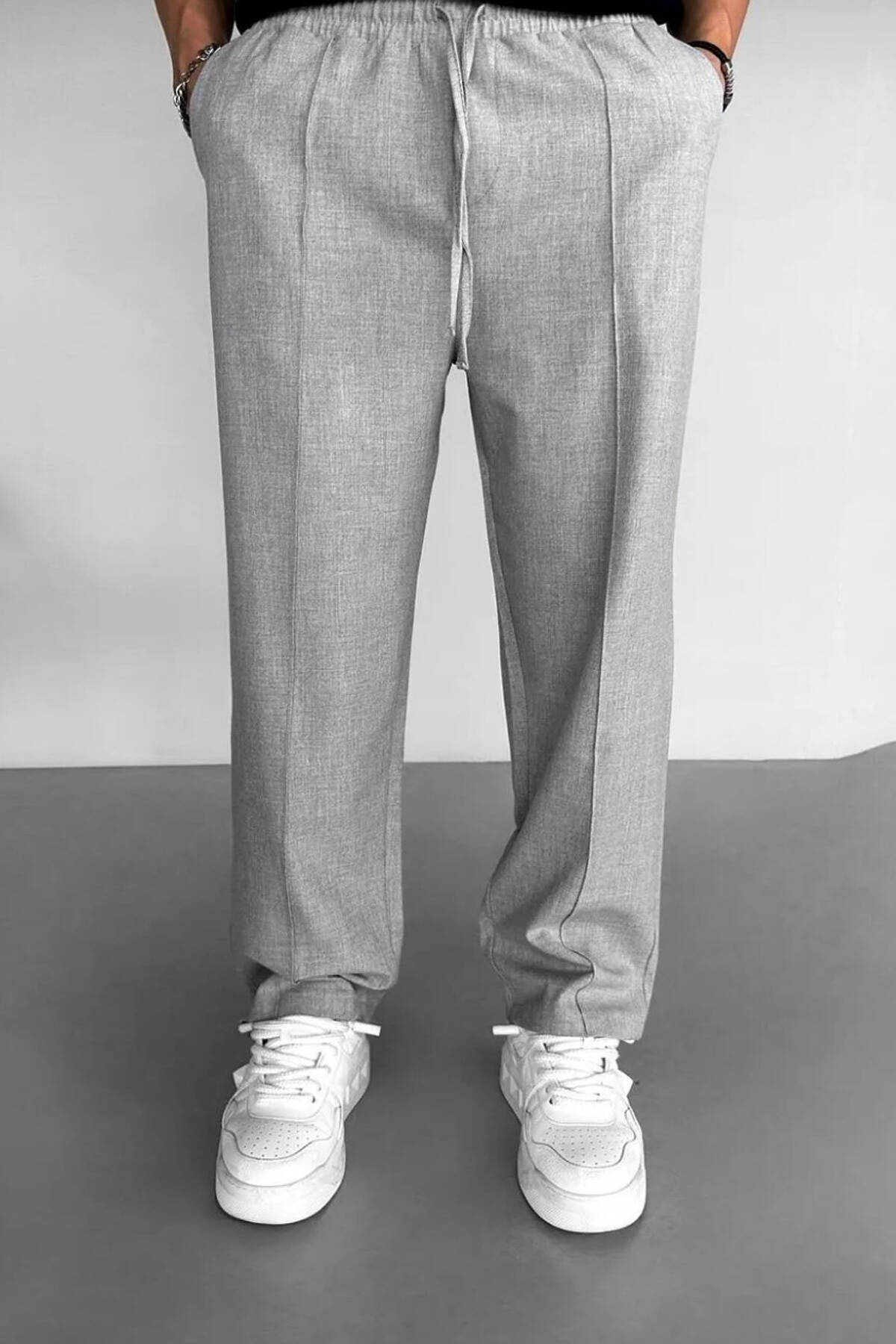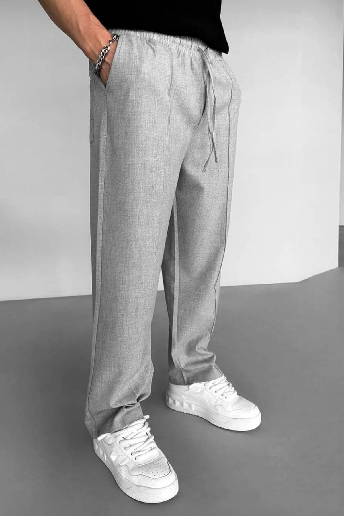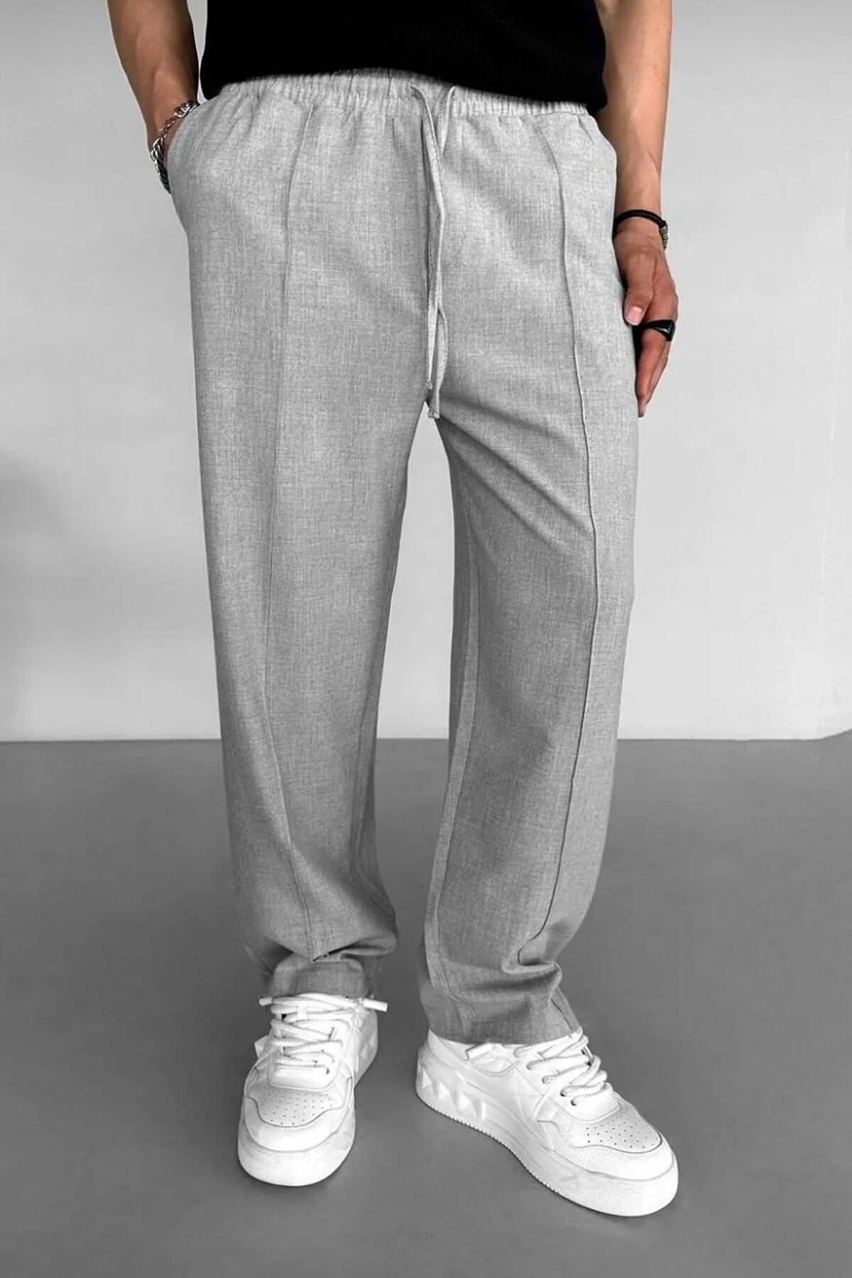 PANTALLONA TË GJERA ME BEL ELASTIK PËR MESHKUJ NË NGJYRËN GRI E ZBARDHUR