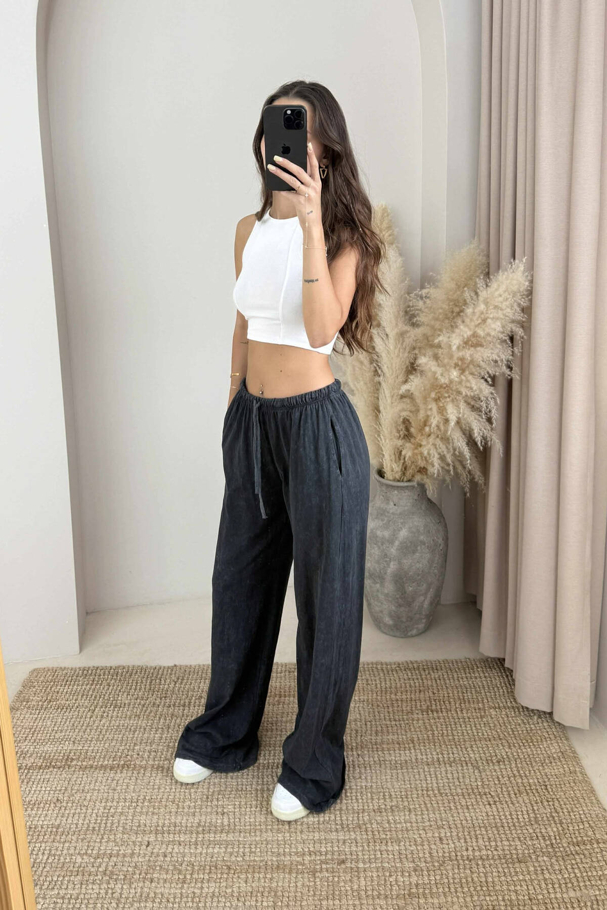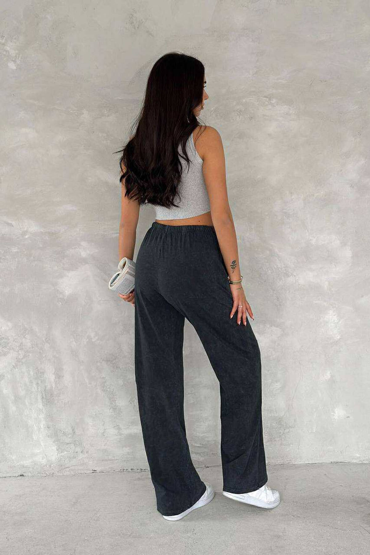 ELASTIC WAIST LACINGS WIDE LEG WOMEN TROUSERS DARK GREY/GEE