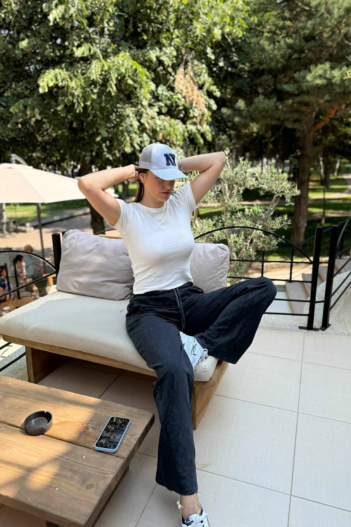 ELASTIC WAIST LACINGS DESIGNED WOMEN TROUSERS BLACK/ E ZEZE