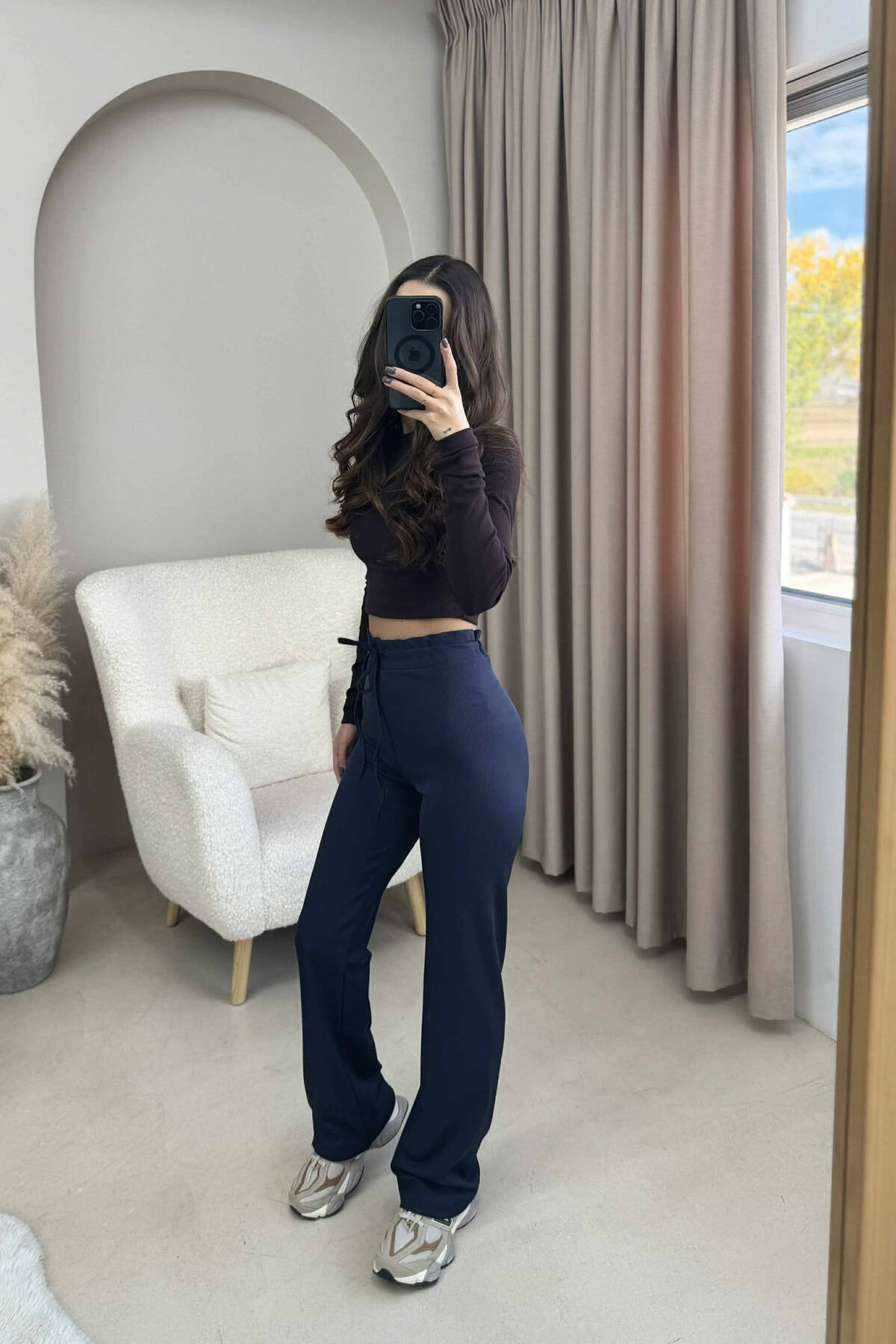 ELASTIC WAIST LACINGS WOMEN SWEATPANTS DARK BLUE/BEE