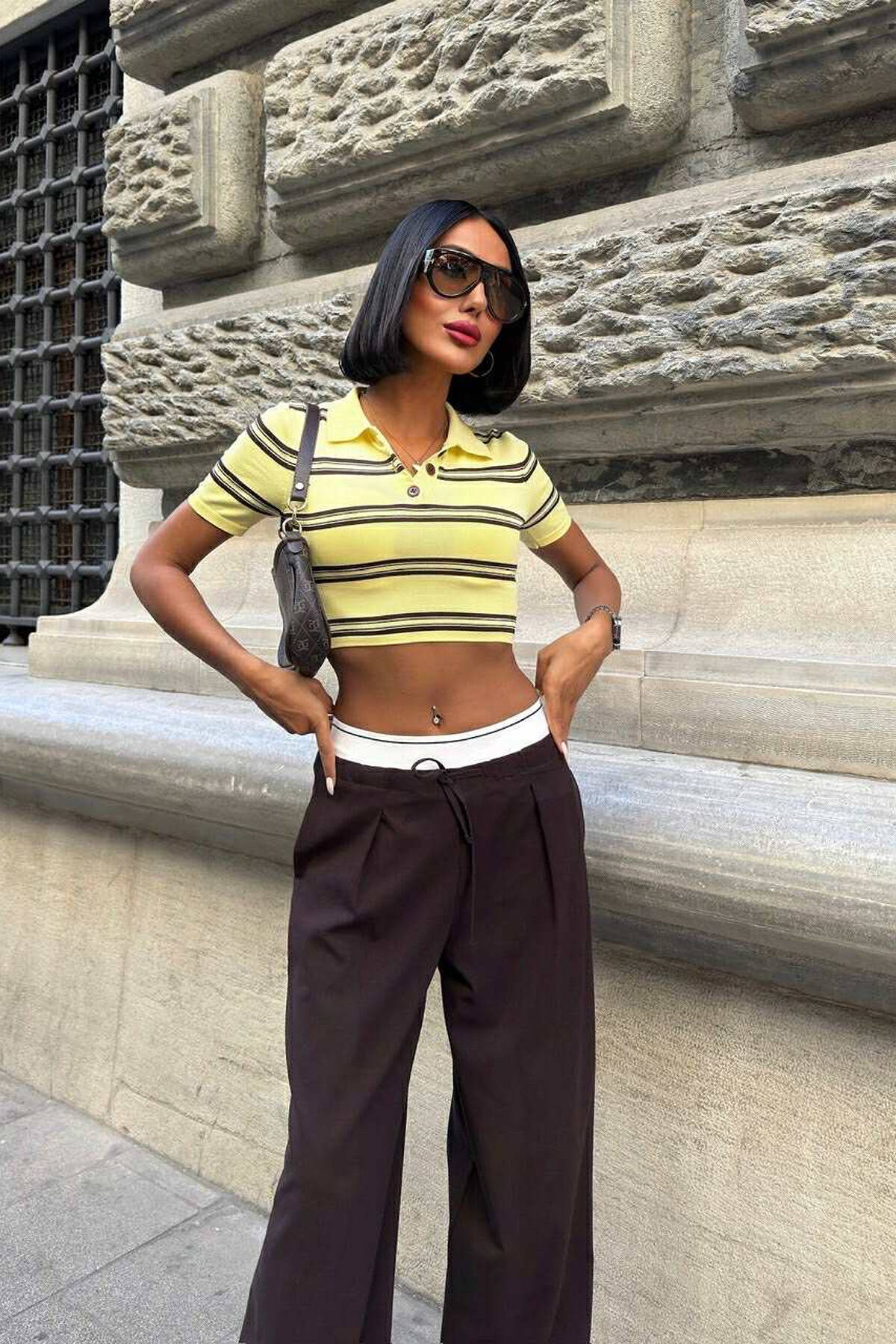 ONE COLOR BELT DETAIL WOMAN TROUSERS BROWN/KAFE