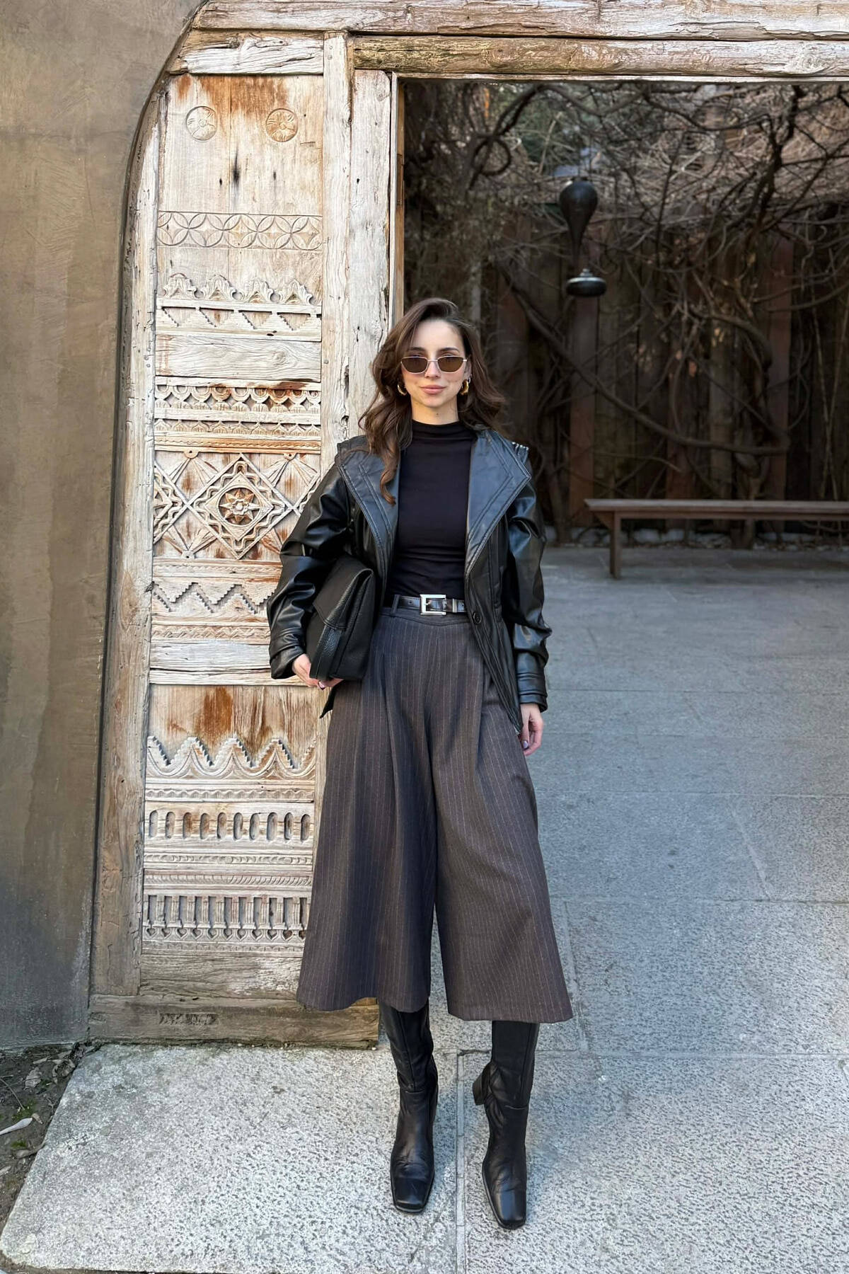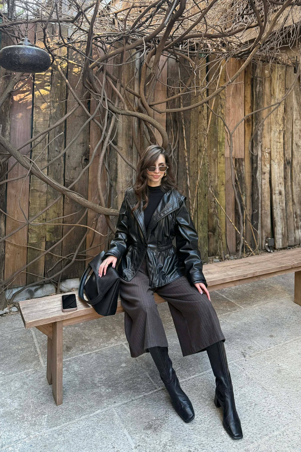 ELASTIC WAIST LEATHER ONE COLOR WOMEN JACKET BLACK/ E ZEZE