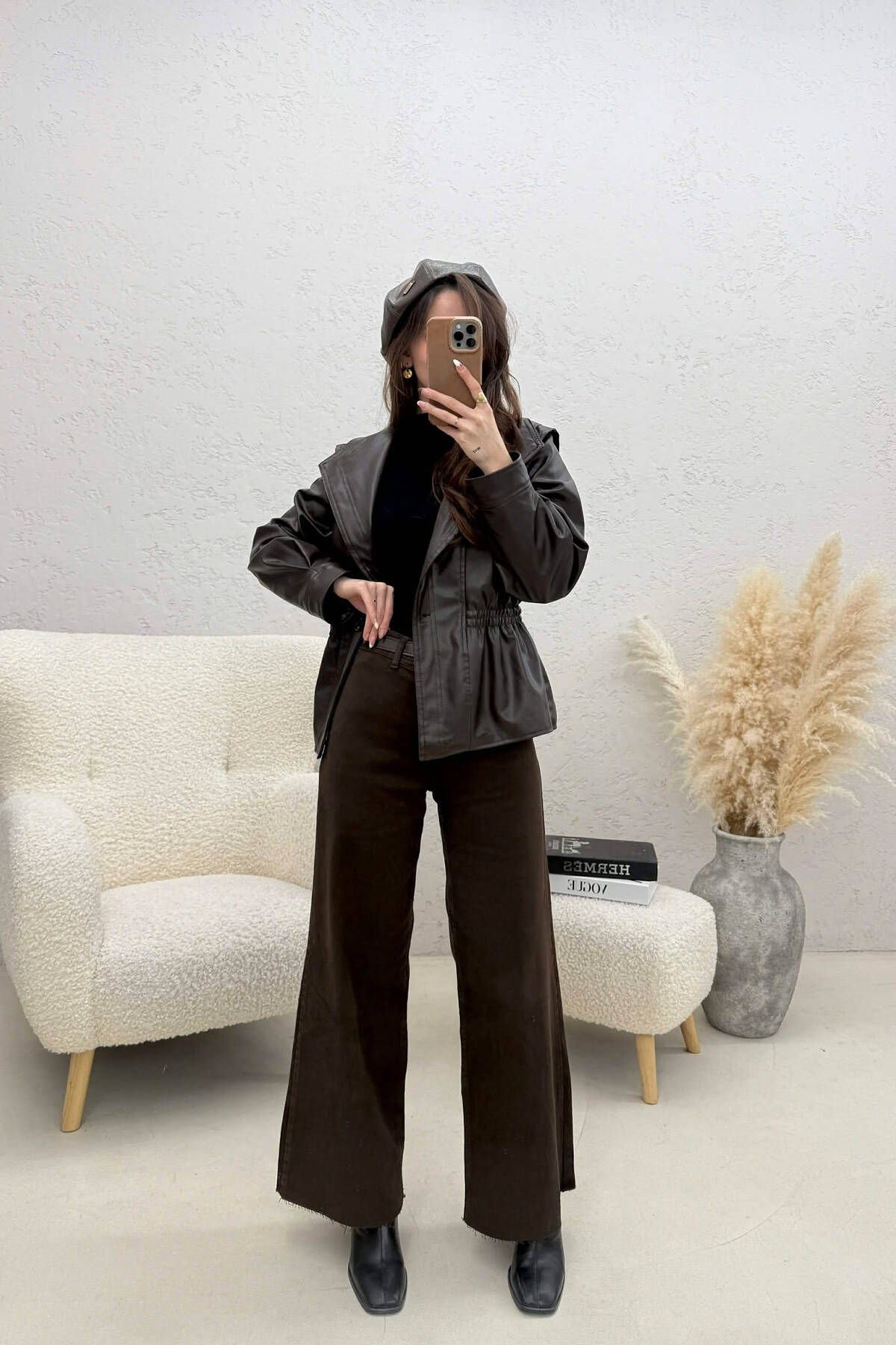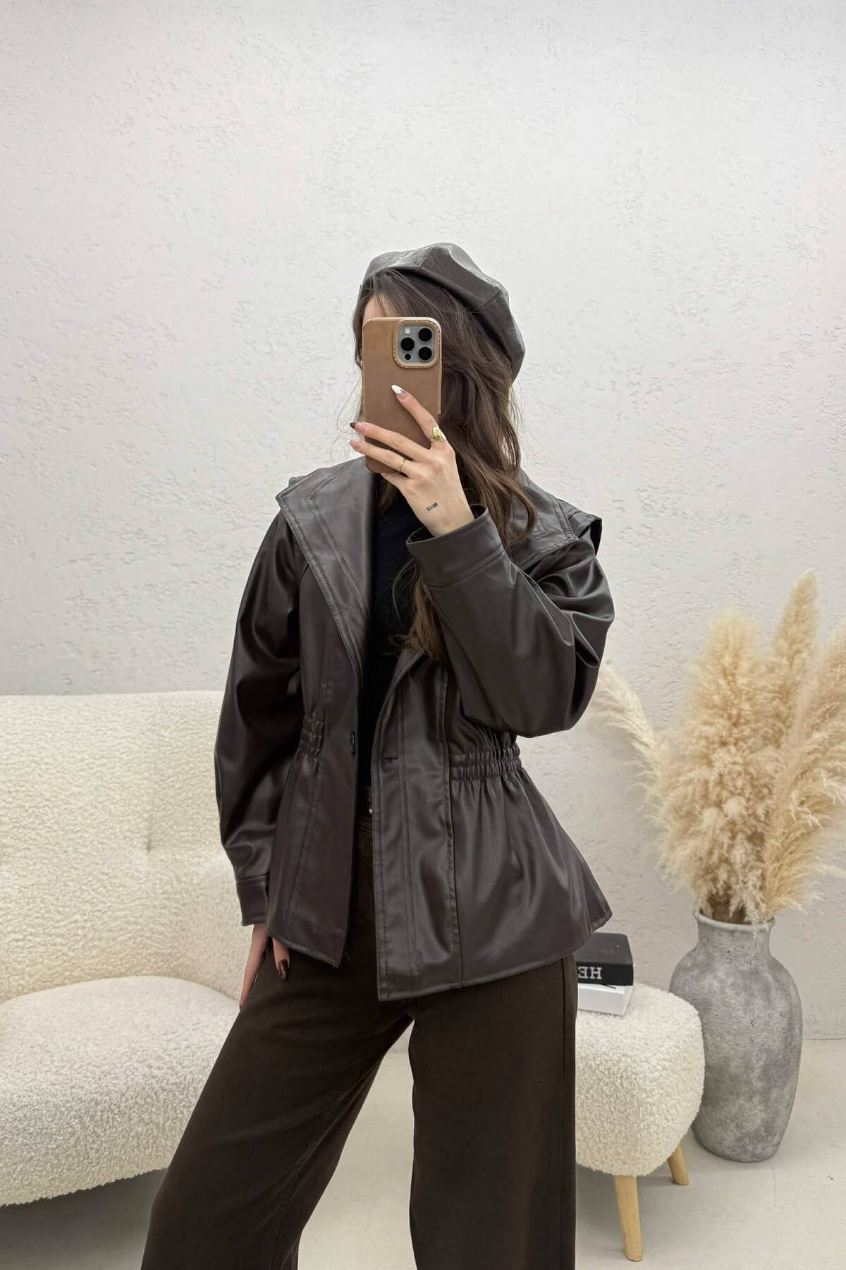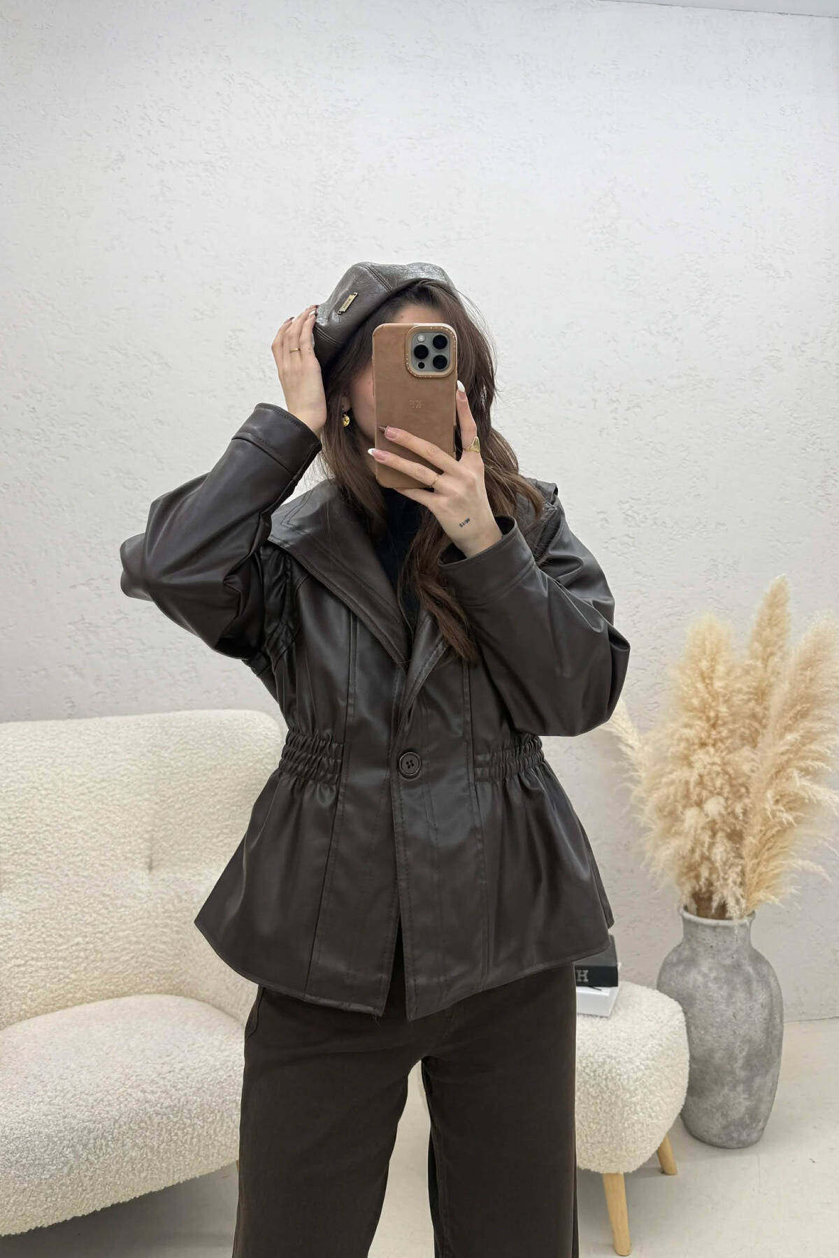 XHAKETE NJE NGJYRËSHE LEKURE ME BEL ELASTIK PER FEMRA NË NGJYRE KAFE TE ERRET