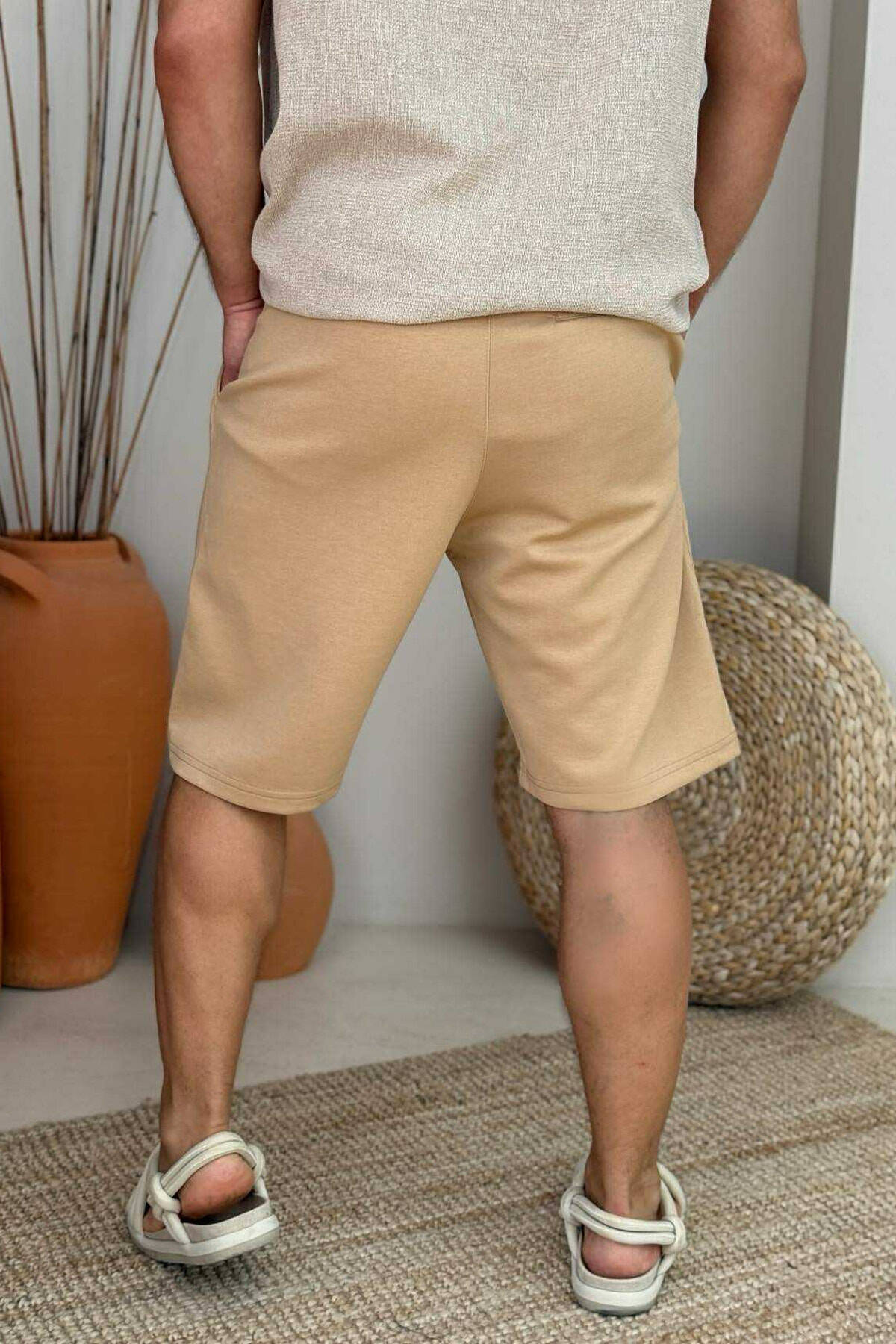ELASTIC WAIST ONE COLOR MEN SHORT SWEATPANTS BEIGE/BEZHE