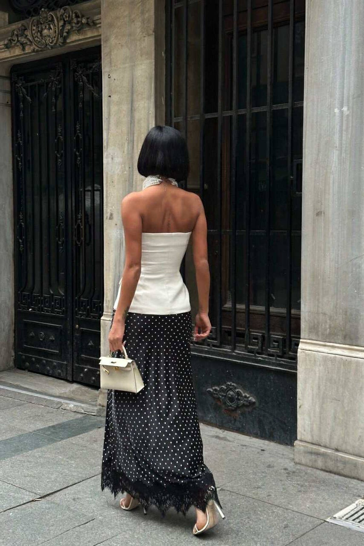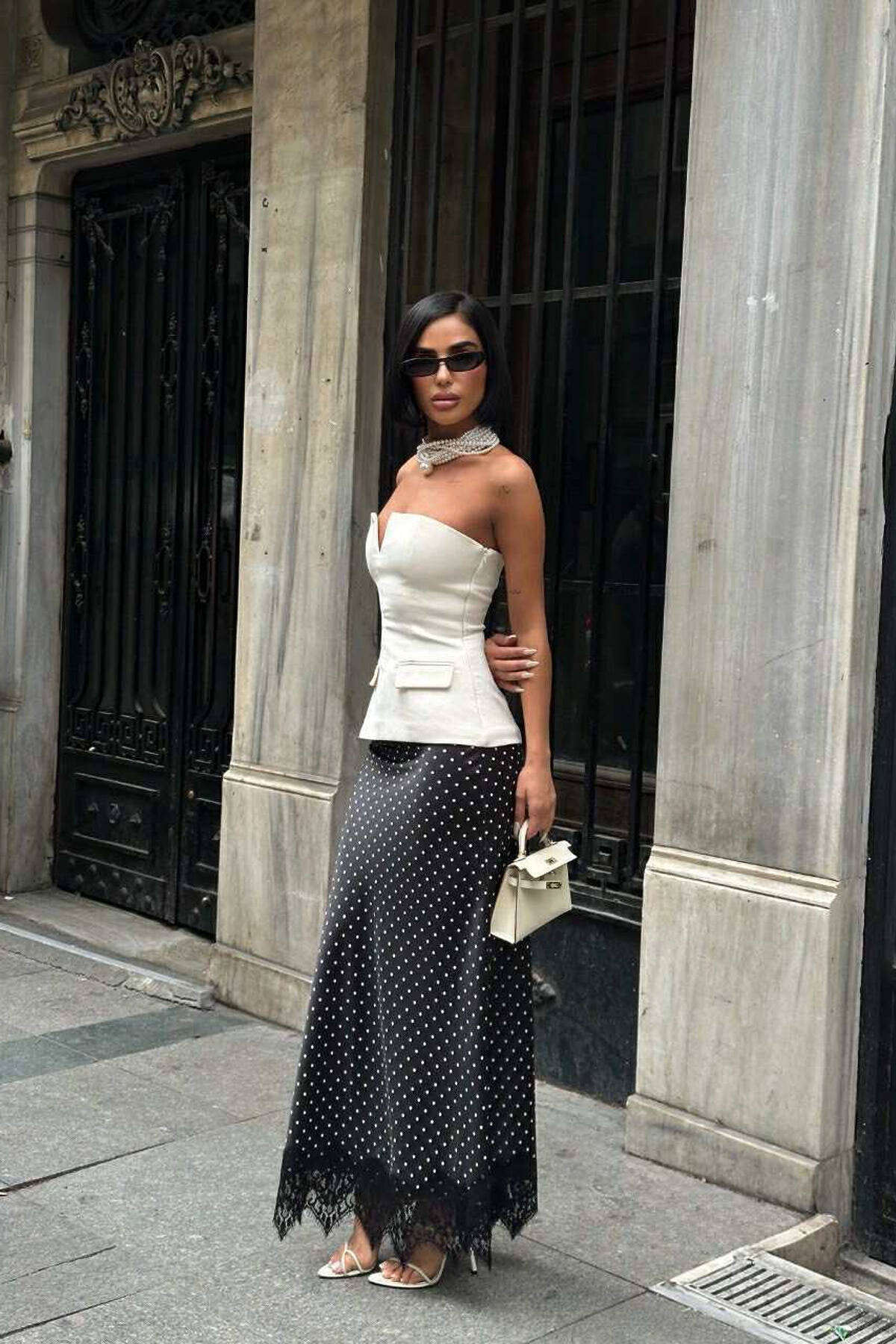ELASTIC WAIST POLKA DOTS LONG WOMEN SKIRT BLACK/ E ZEZE