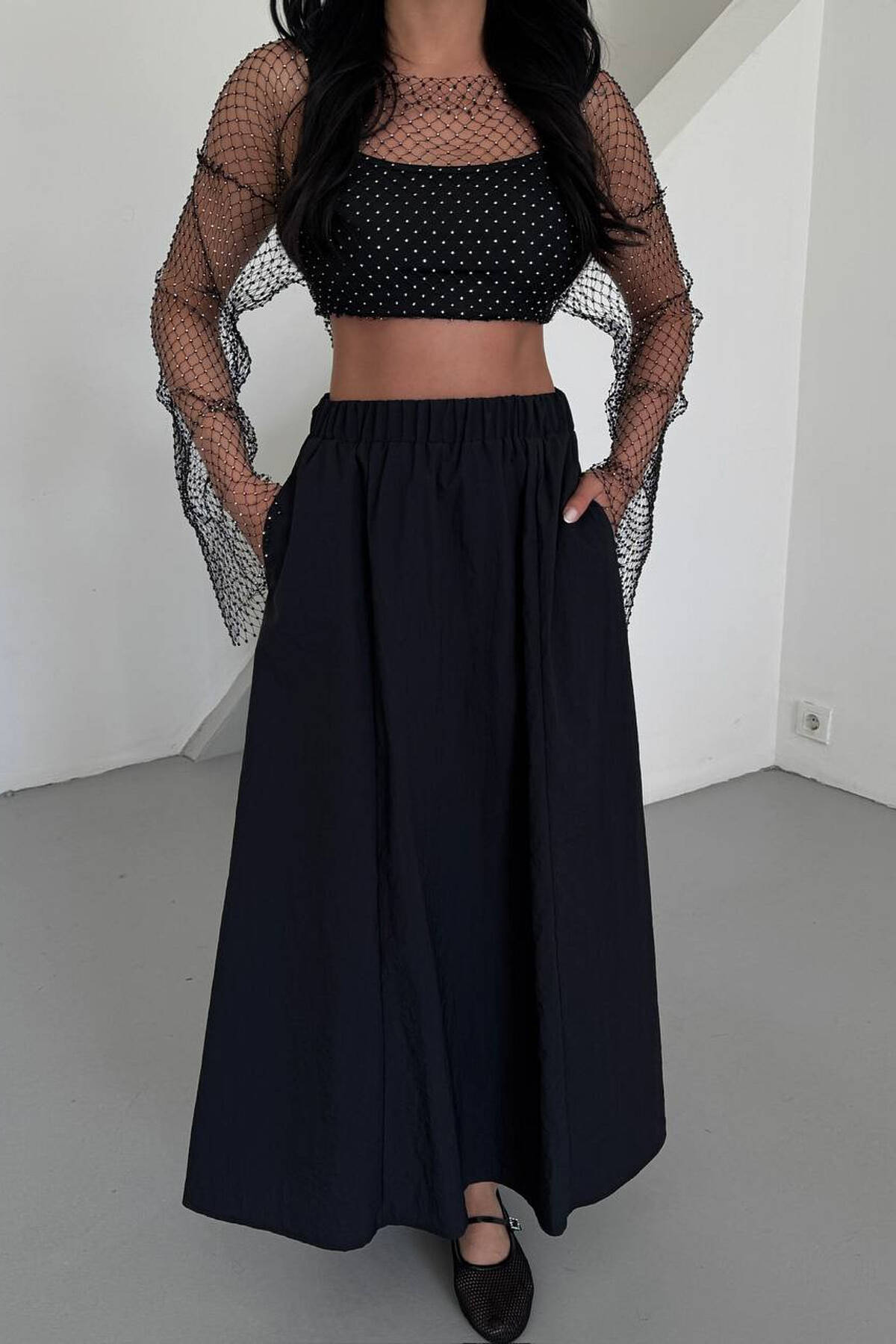 ELASTIC WAIST WOMAN SKIRT BLACK/ E ZEZE