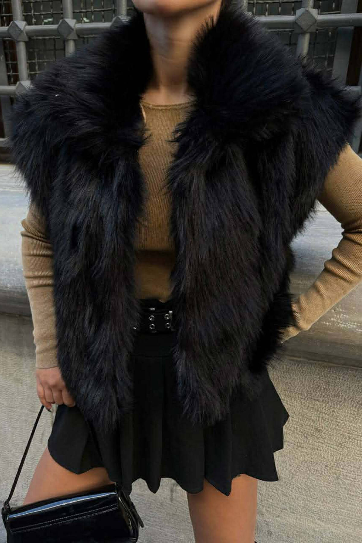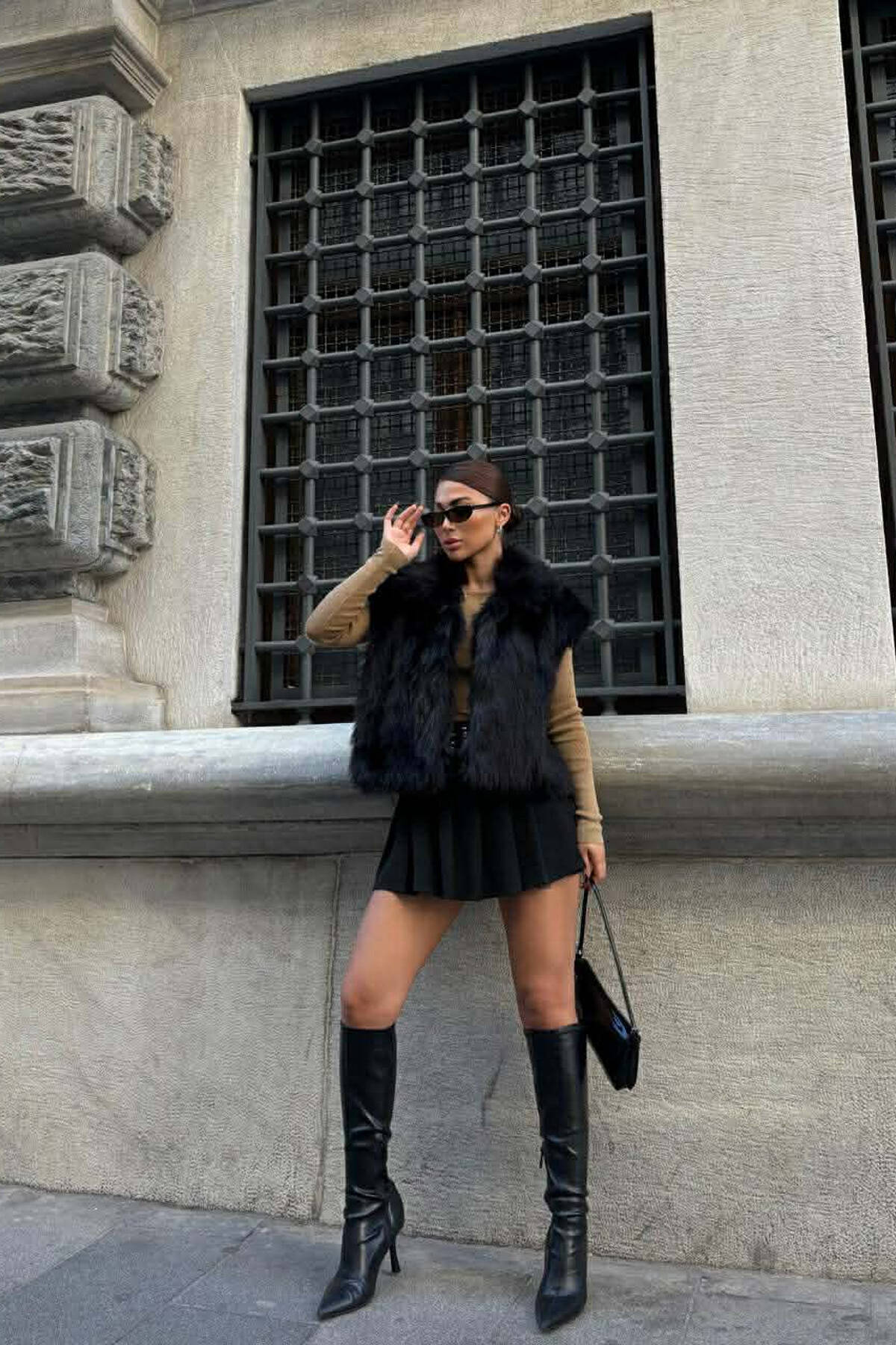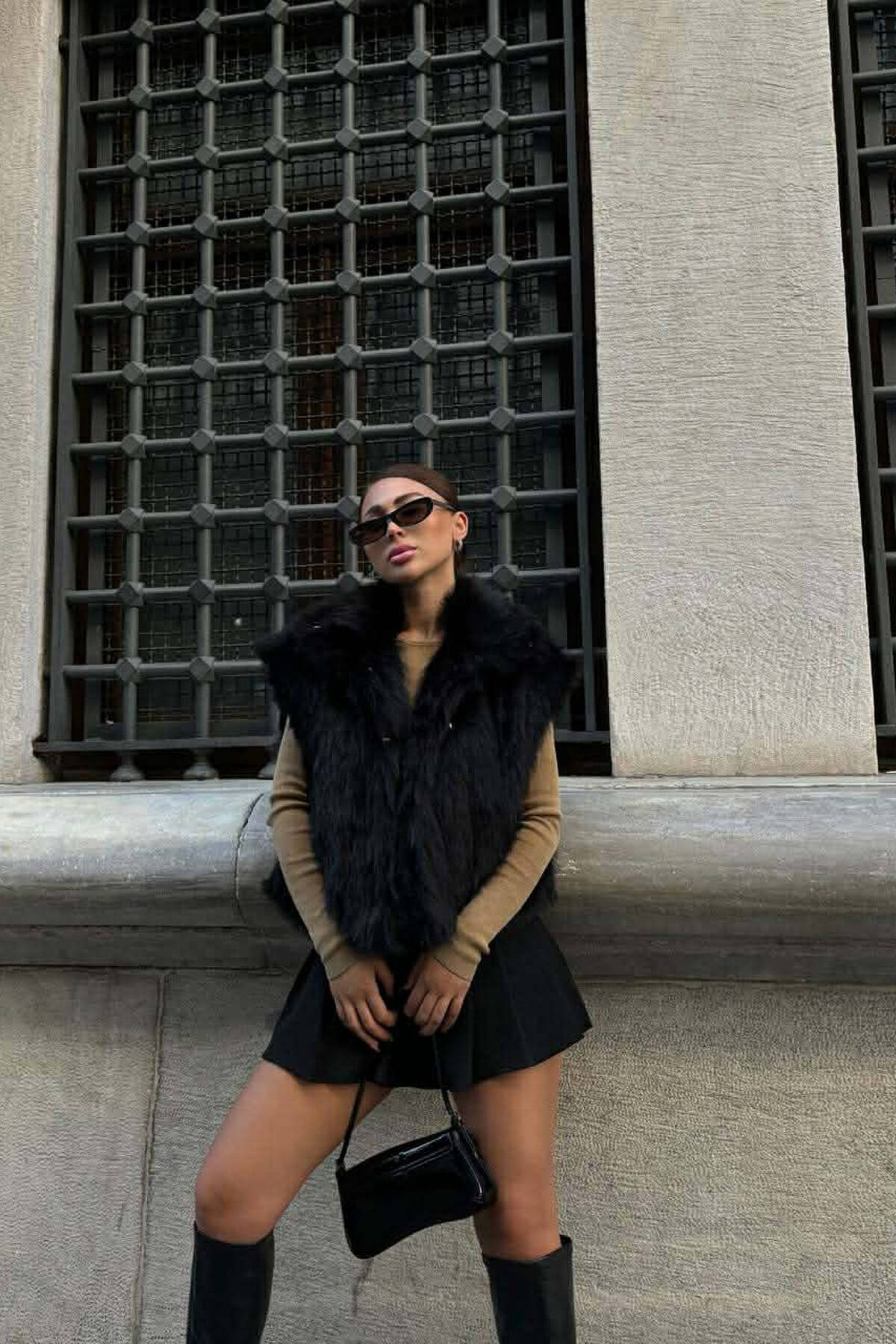 FAUX FUR ONE COLOR WOMEN VEST BLACK/ E ZEZE