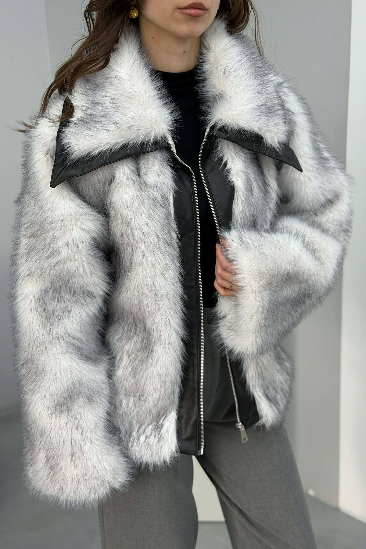 FAUX FUR ZIPPER WOMEN COAT WHITE-E BARDHE