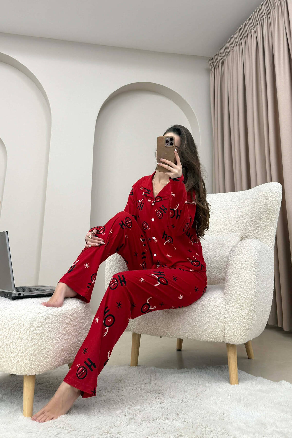 FESTIVE DESIGN SHIRT+ TROUSERS WOMEN PYJAMAS RED/E KUQE