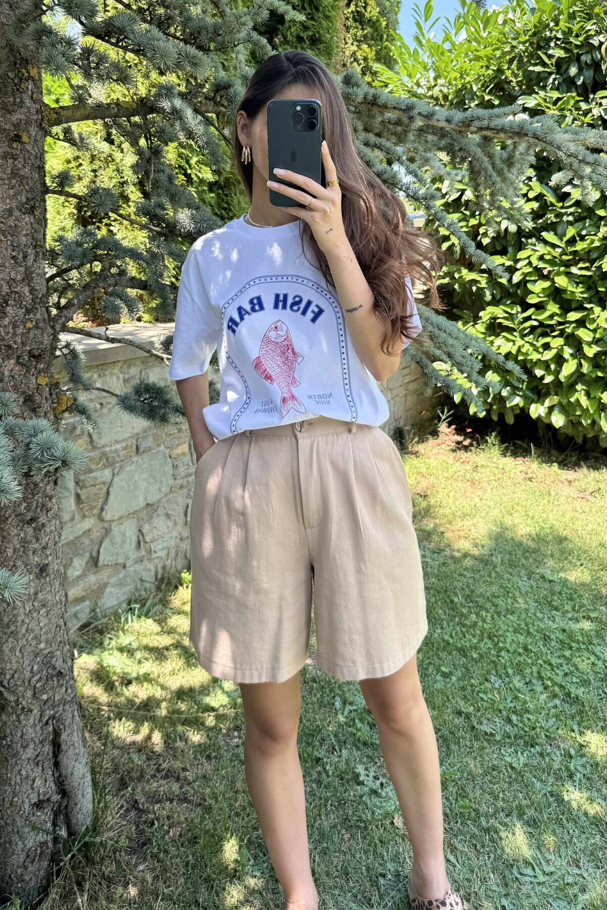 FISH IMAGE WRITTINGS WOMEN T-SHIRT WHITE-E BARDHE